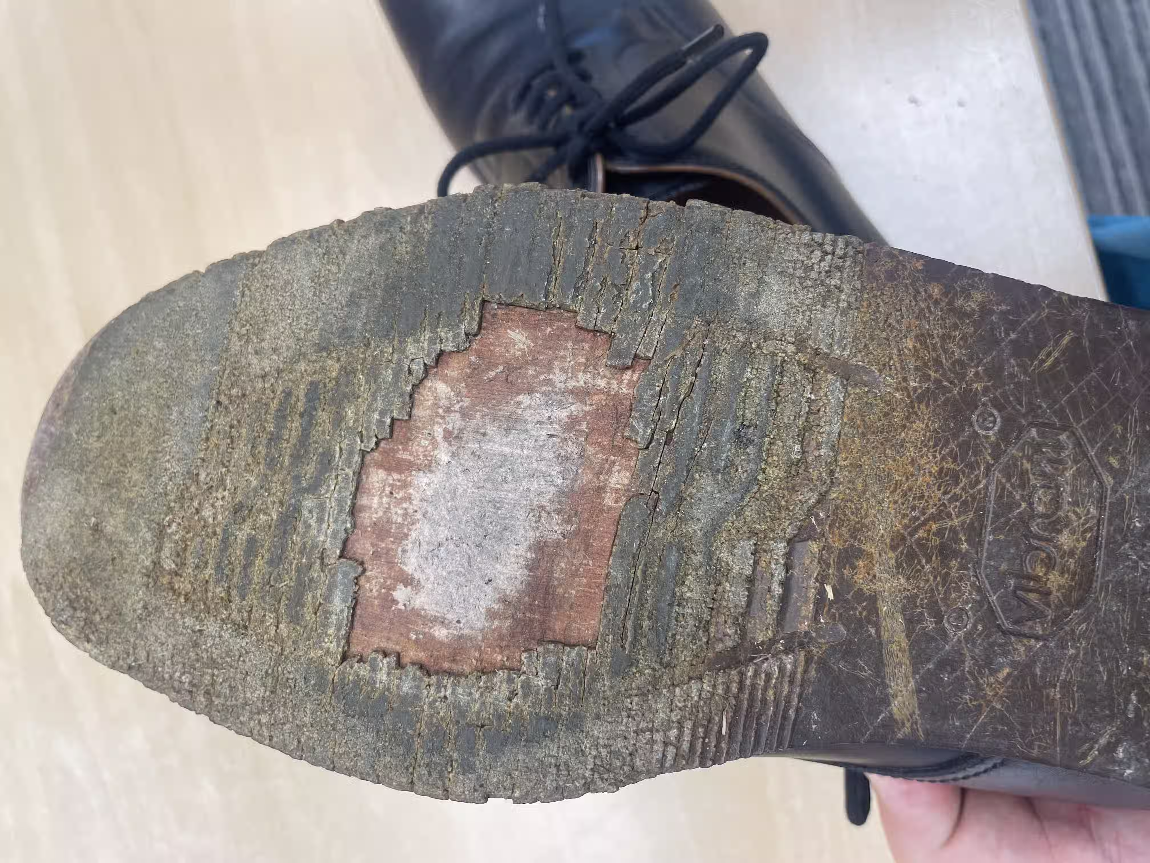 By the way, some manufacturers do not attach the outsole to the midsole with the rapid stitch, but simply glue the outsole onto the midsole. Often there are entire prefabricated parts for this, consisting of outsole and heel, which can simply be glued onto the entire midsole. Resoling is then extremely easy: pull out the outsole parts with pliers and glue on new ones.
