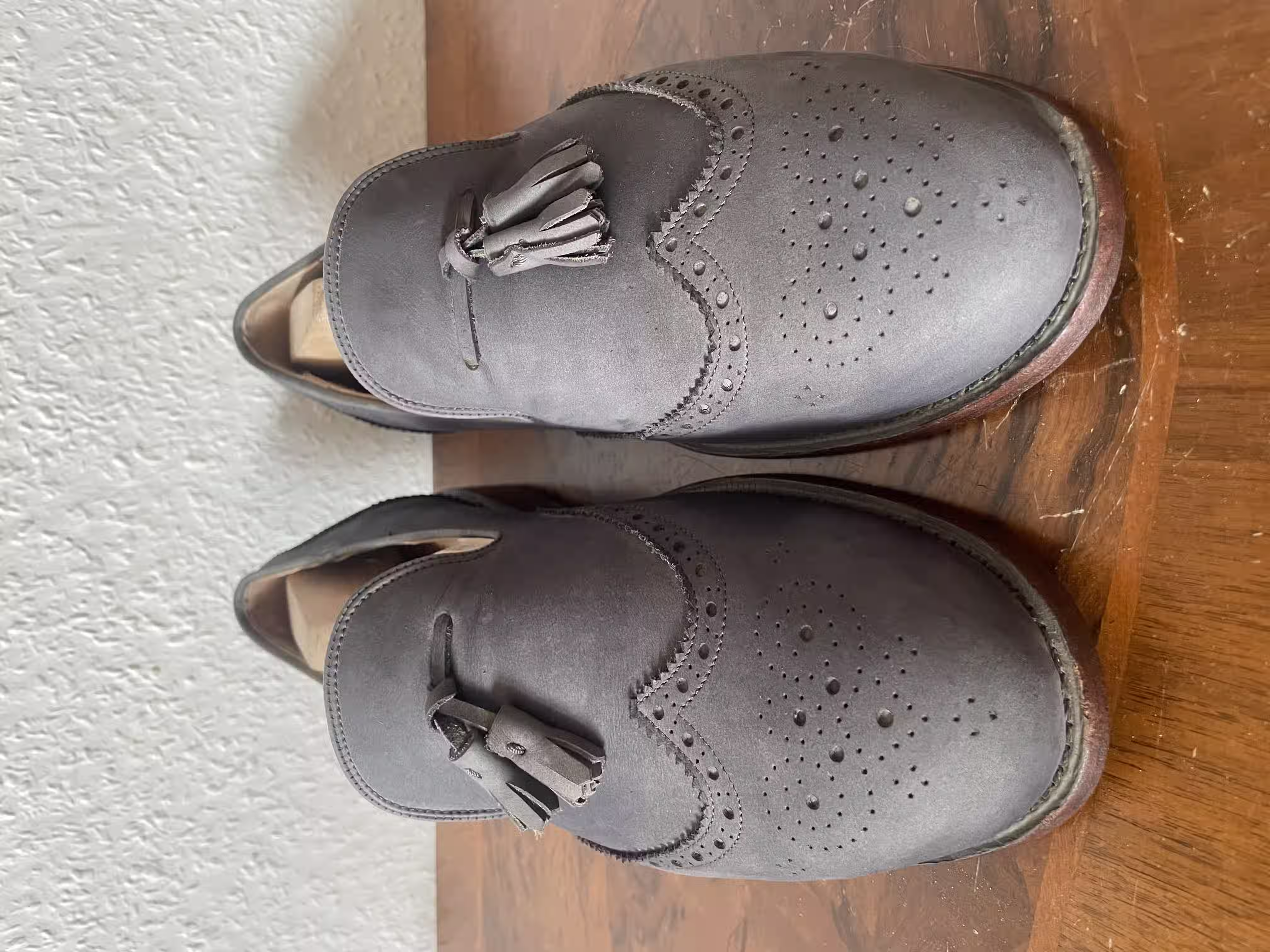 If the Blake stitch is visible on the outsole and thus freely accessible, water can theoretically penetrate the interior of the shoe more easily through the seam openings. However, one would tend to use such shoes in the Blake construction as summer shoes anyway, and it would have to rain reasonably hard for your feet to get wet. You wouldn’t want to walk through puddles in such shoes anyway, and all leather shoes get wet inside if there is too much rain - simply because leather absorbs water. You can mitigate this process, for example, with waterproofing sprays or wax, but you cannot fundamentally change the facts. And especially if your sole is thin, the shoes and feet will get wet anyway - regardless of whether there are holes in the sole or not.