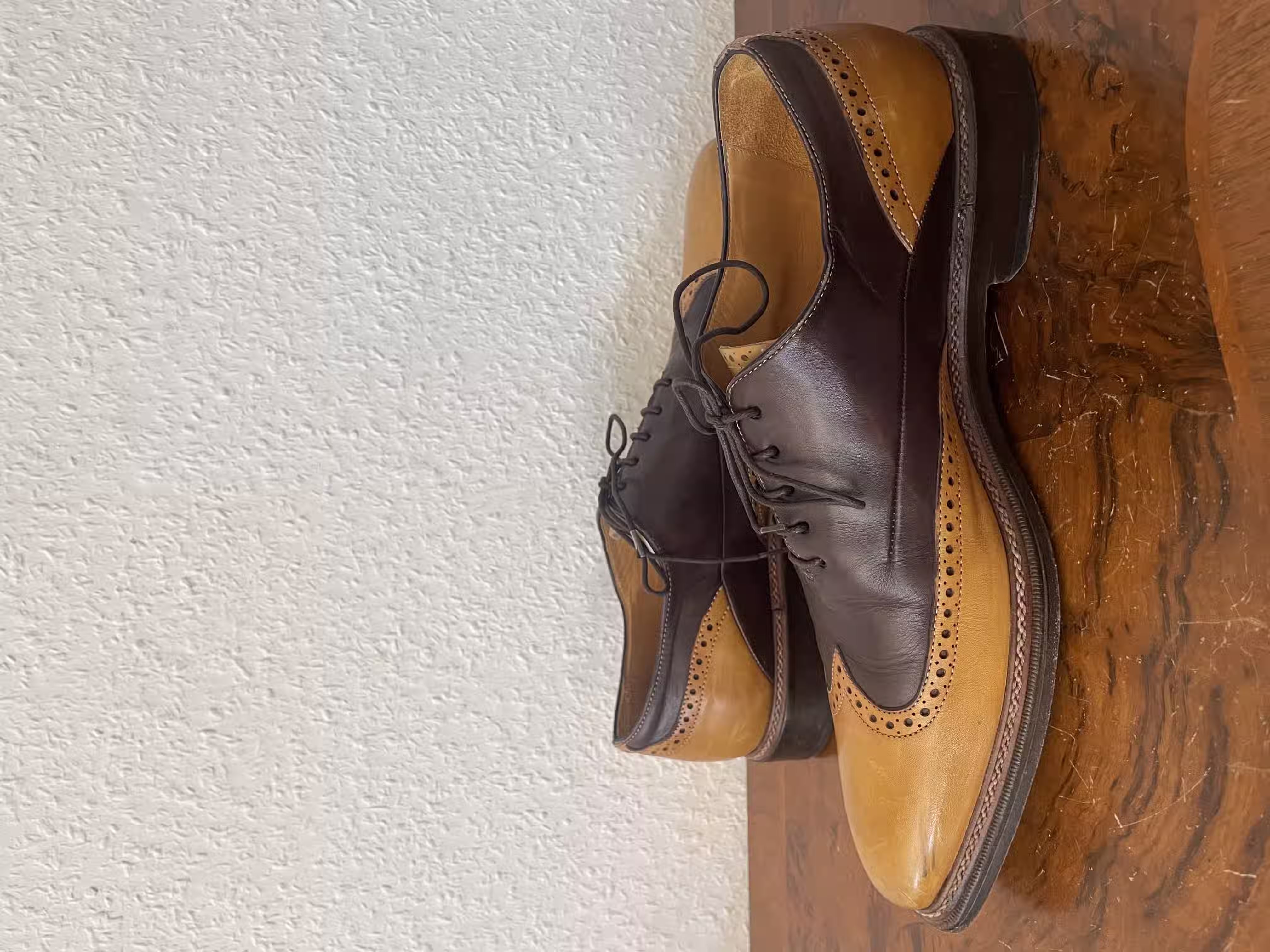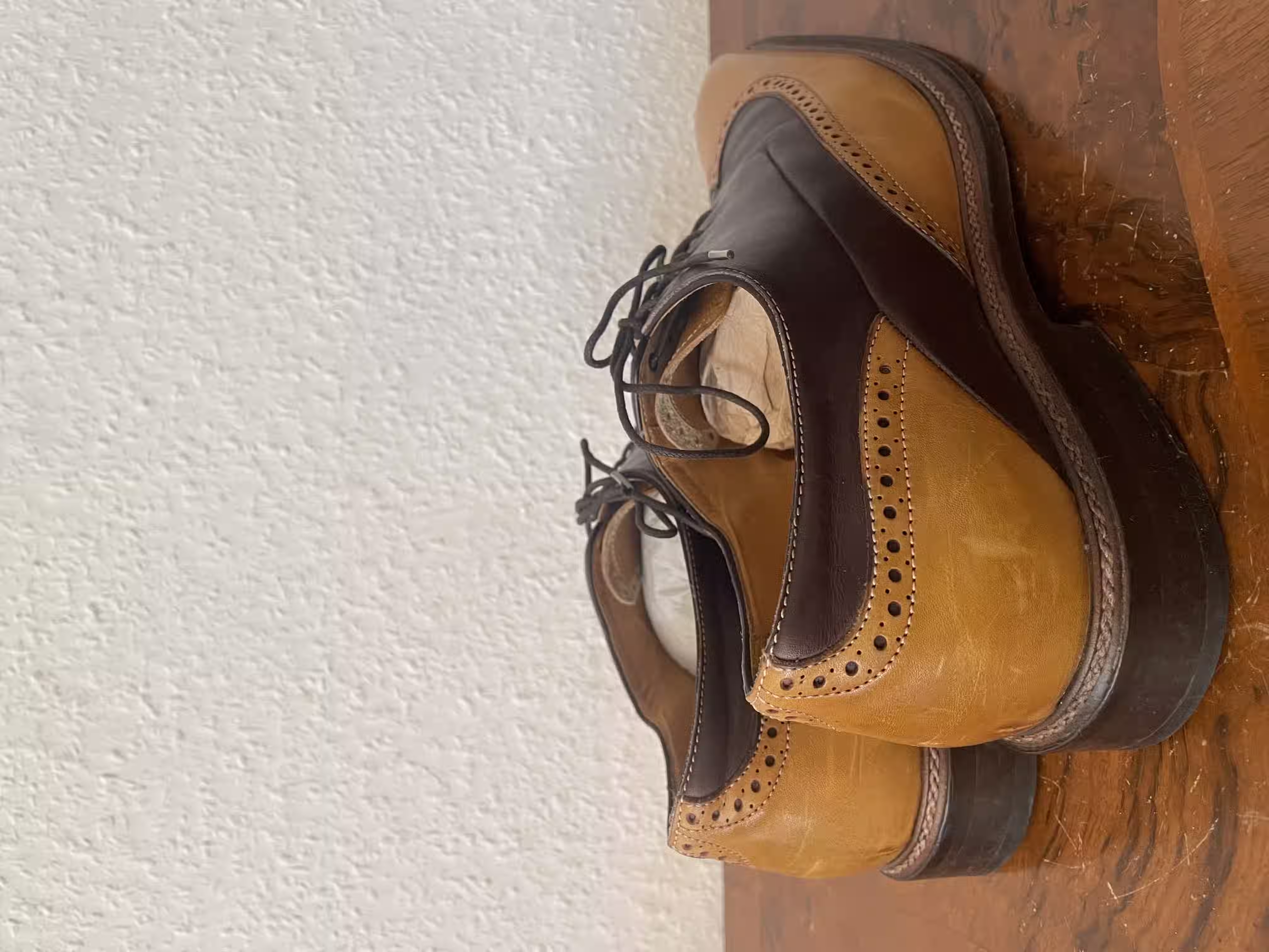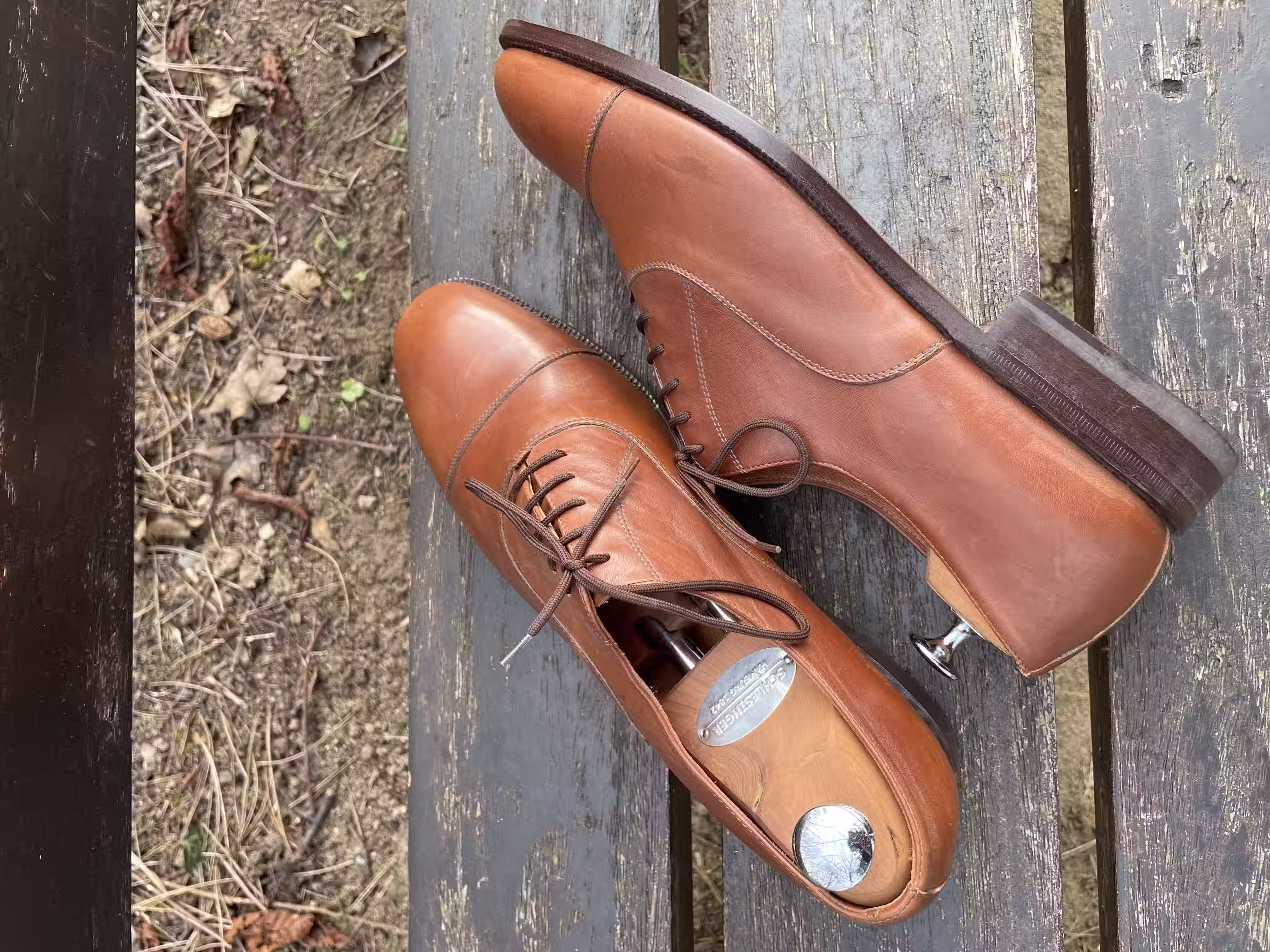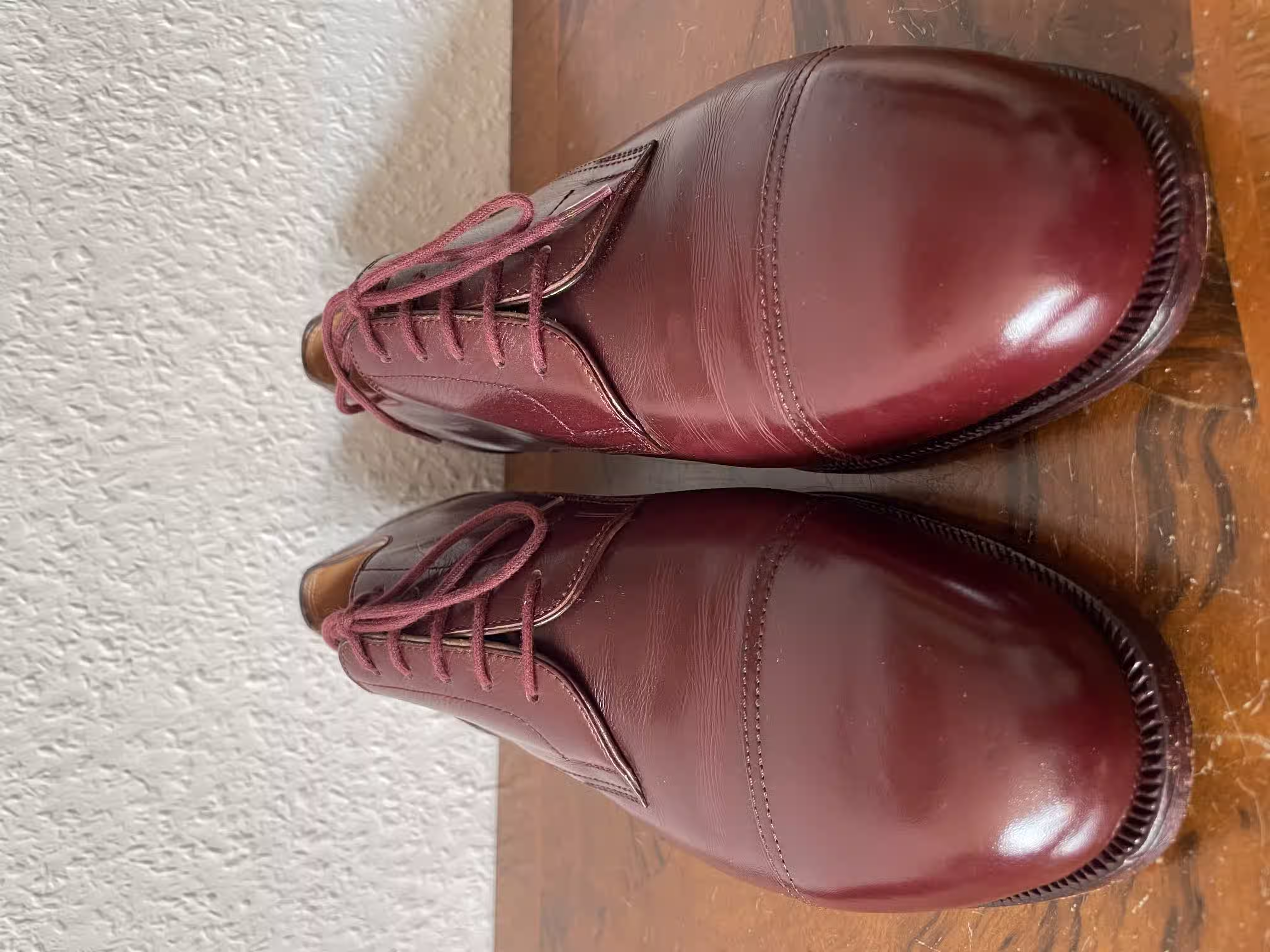 I once had a pair of nice black single monks; from the outside they looked very good and were quite comfortable. I had the impression that they were stitched in the traditional craft manner and was very happy with them - until the upper started to come loose from the entire sole. Perhaps there are also craftspeople who make the work particularly easy and comfortable for themselves by foregoing sewing in favor of faster glue. Or there are simply very well-made shoes of glued construction. Still, I prefer sewn shoes here, because something like this wouldn’t have happened to me with sewn shoes. But it’s not a disaster, and a cobbler can quickly glue the shoe parts back together.