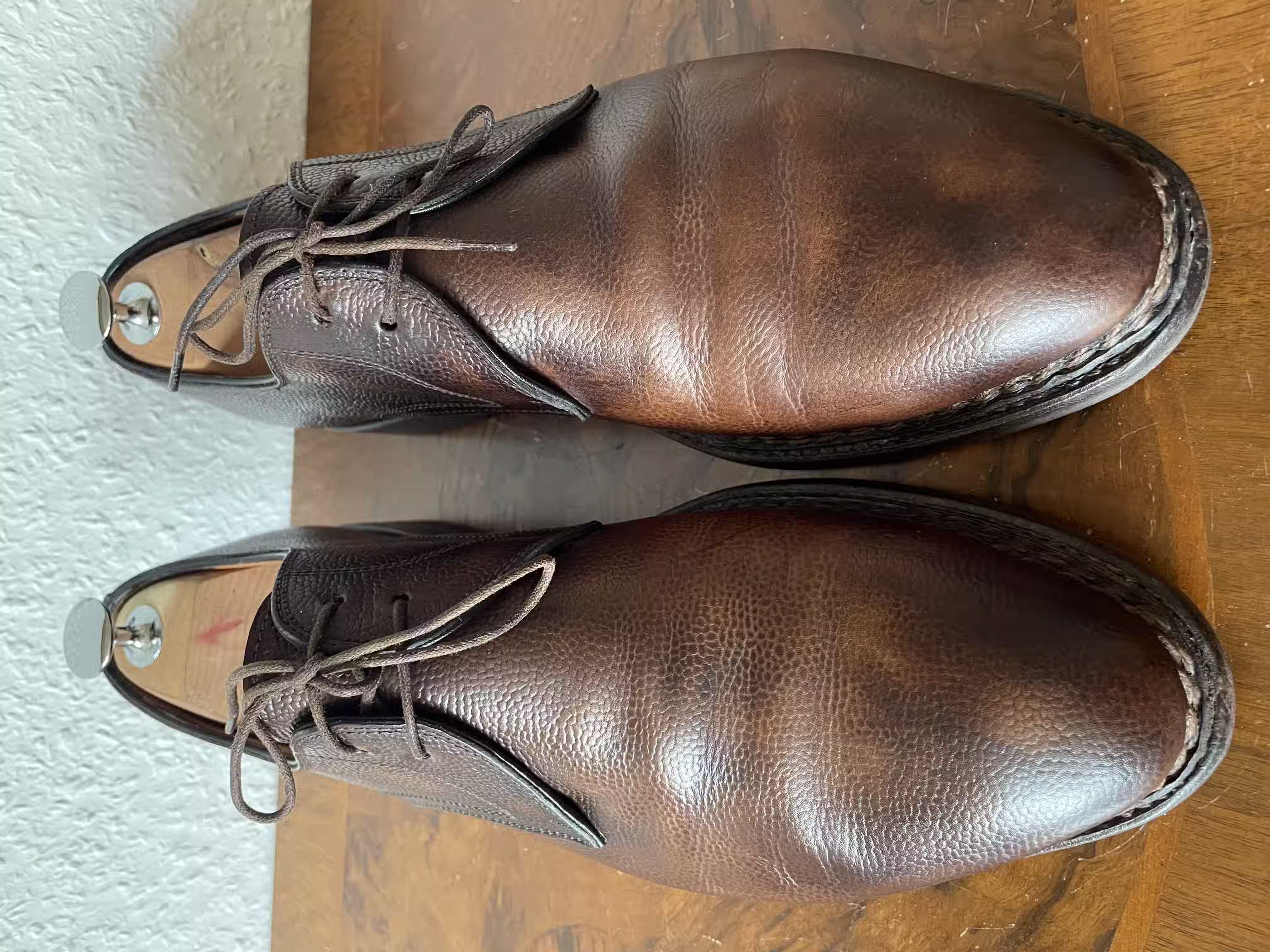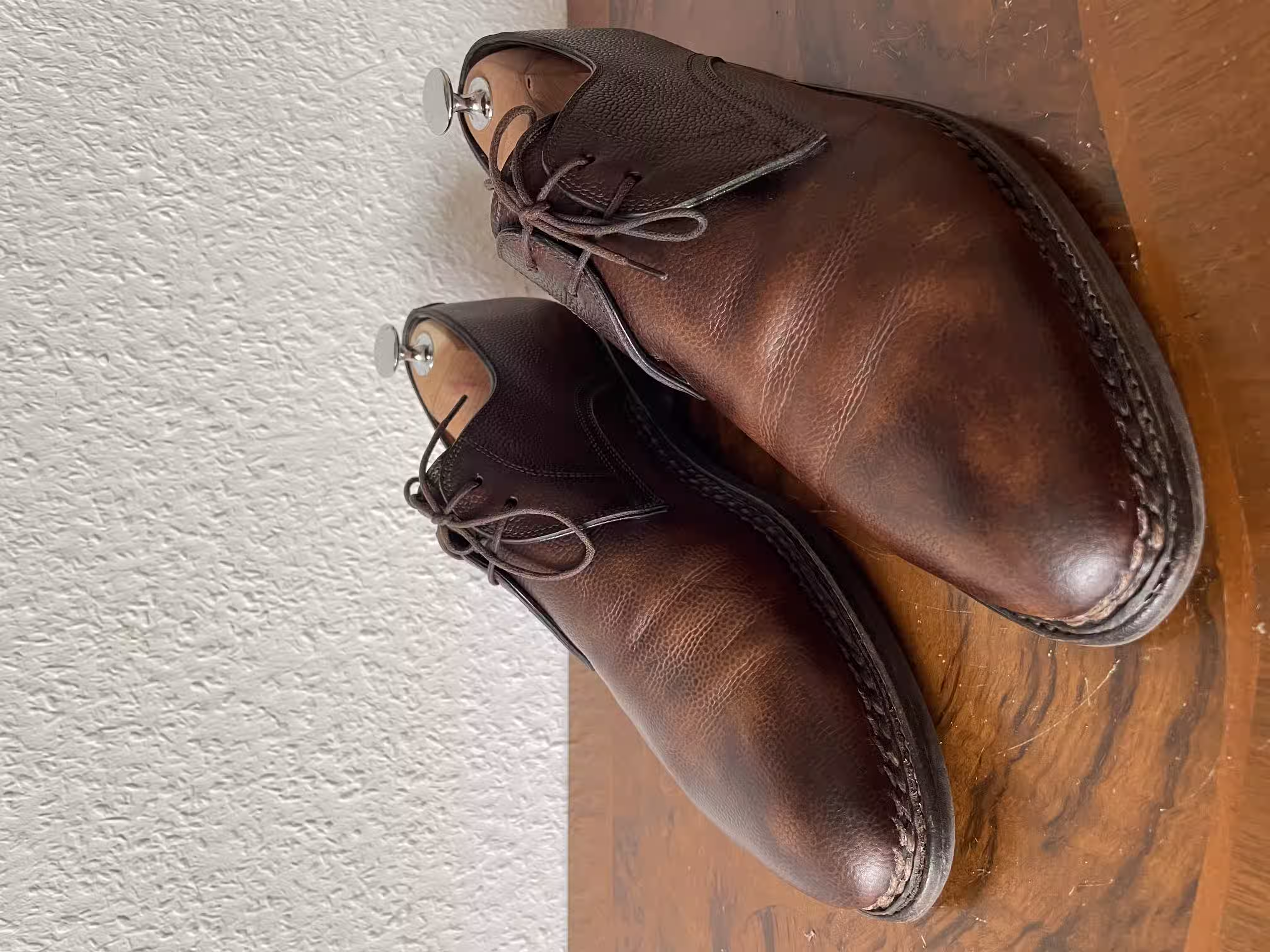 However, when buying such shoes you have to keep in mind that not every cobbler will resole them correctly. That is not a disadvantage of the construction method, but rather a disadvantage of how widely the knowledge is spread. Shoes of the Norvegese construction are simply not very typical among European cobblers—most likely among Italian ones.