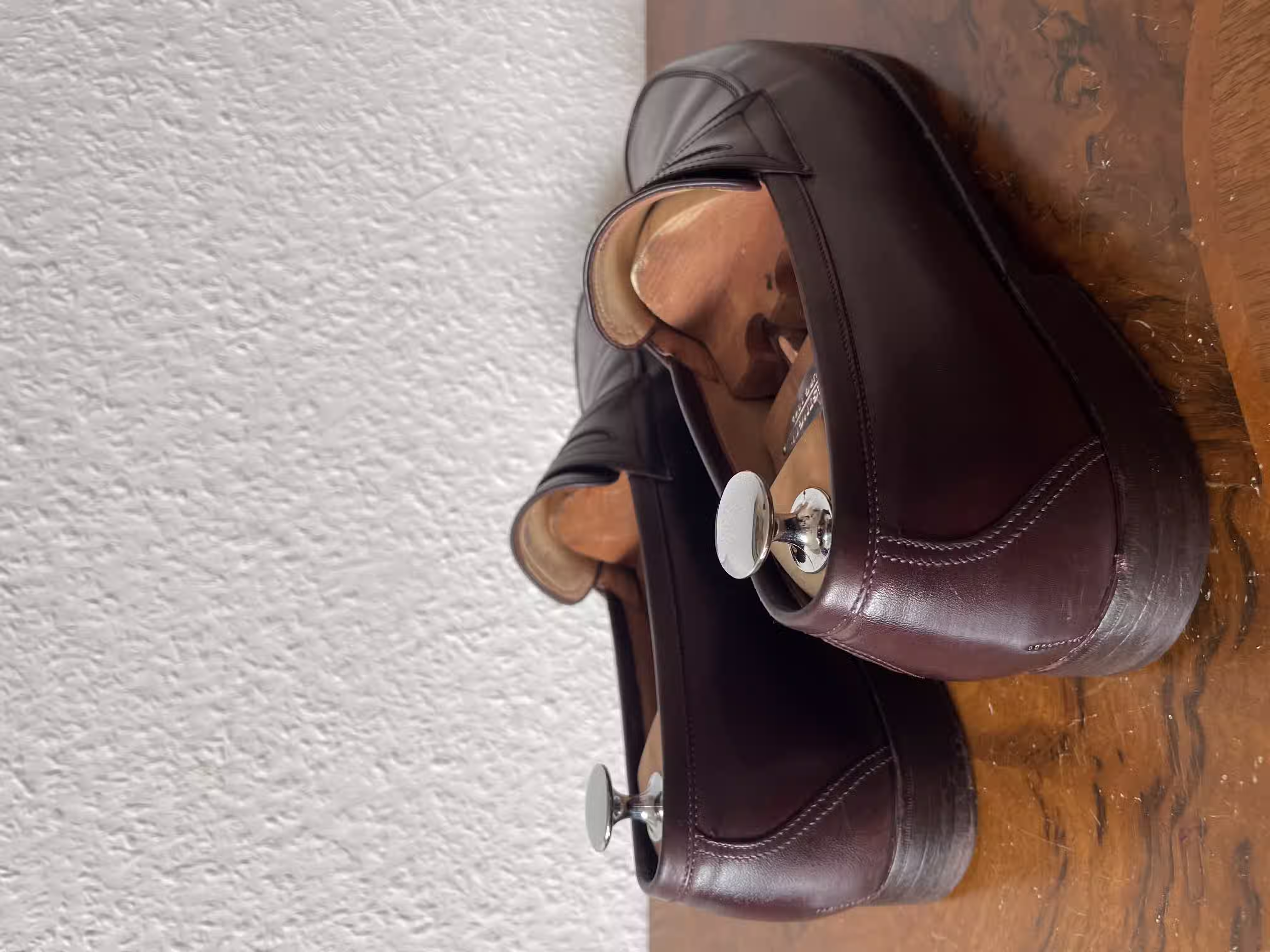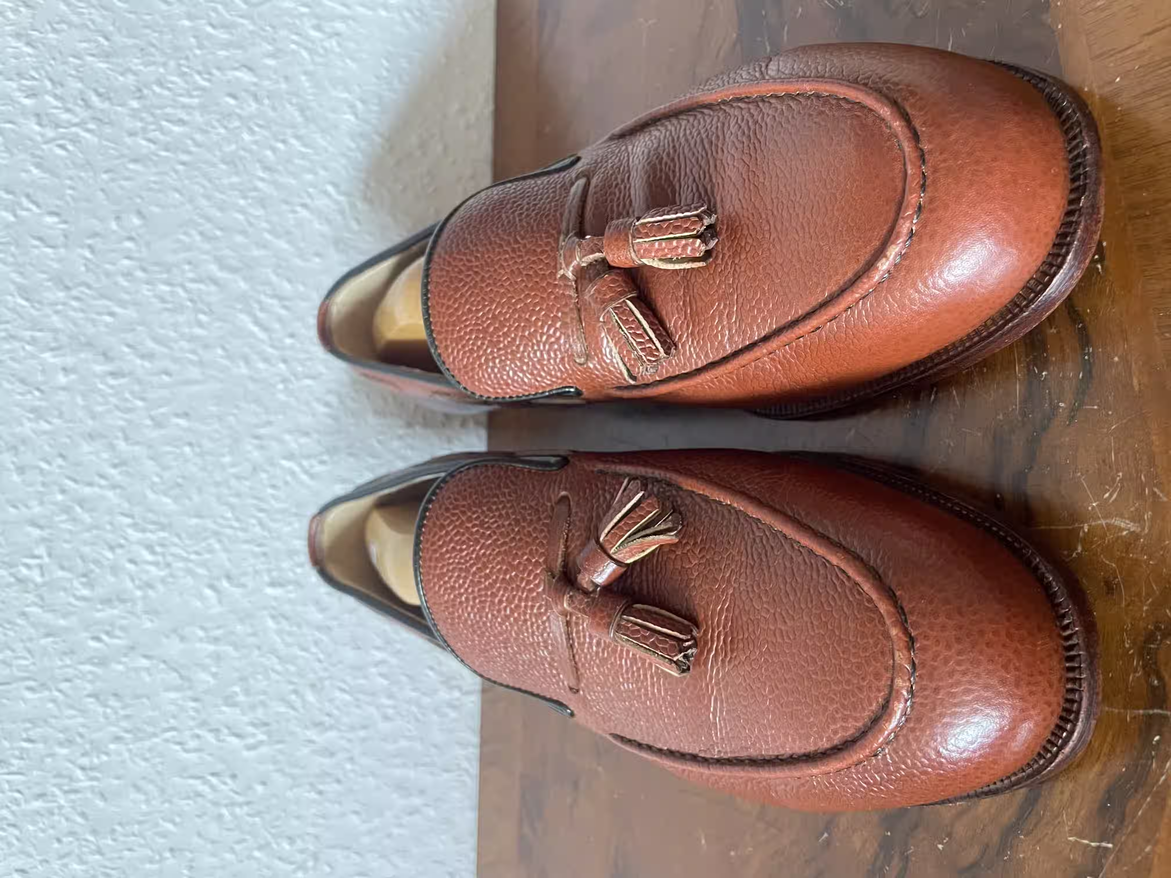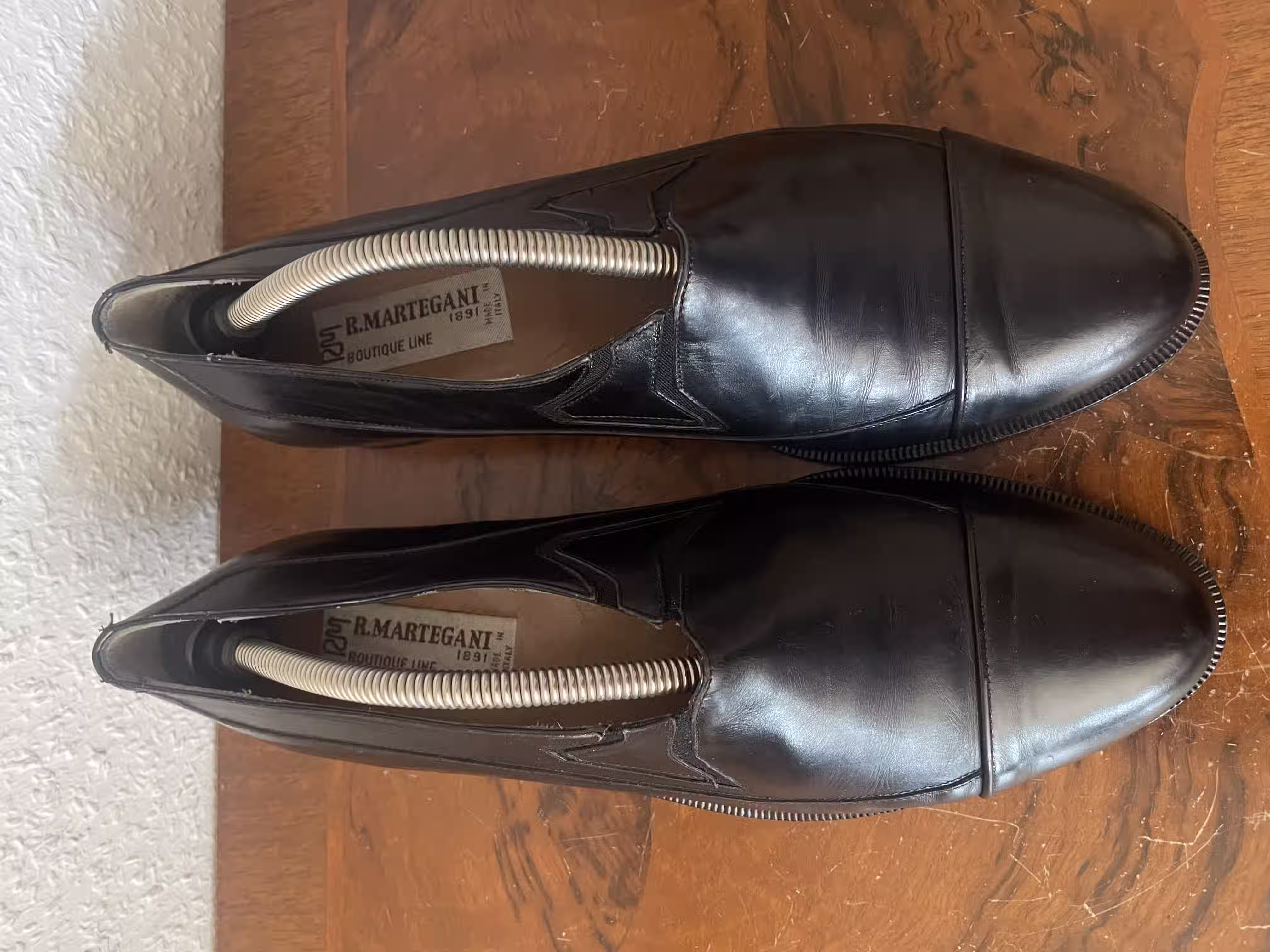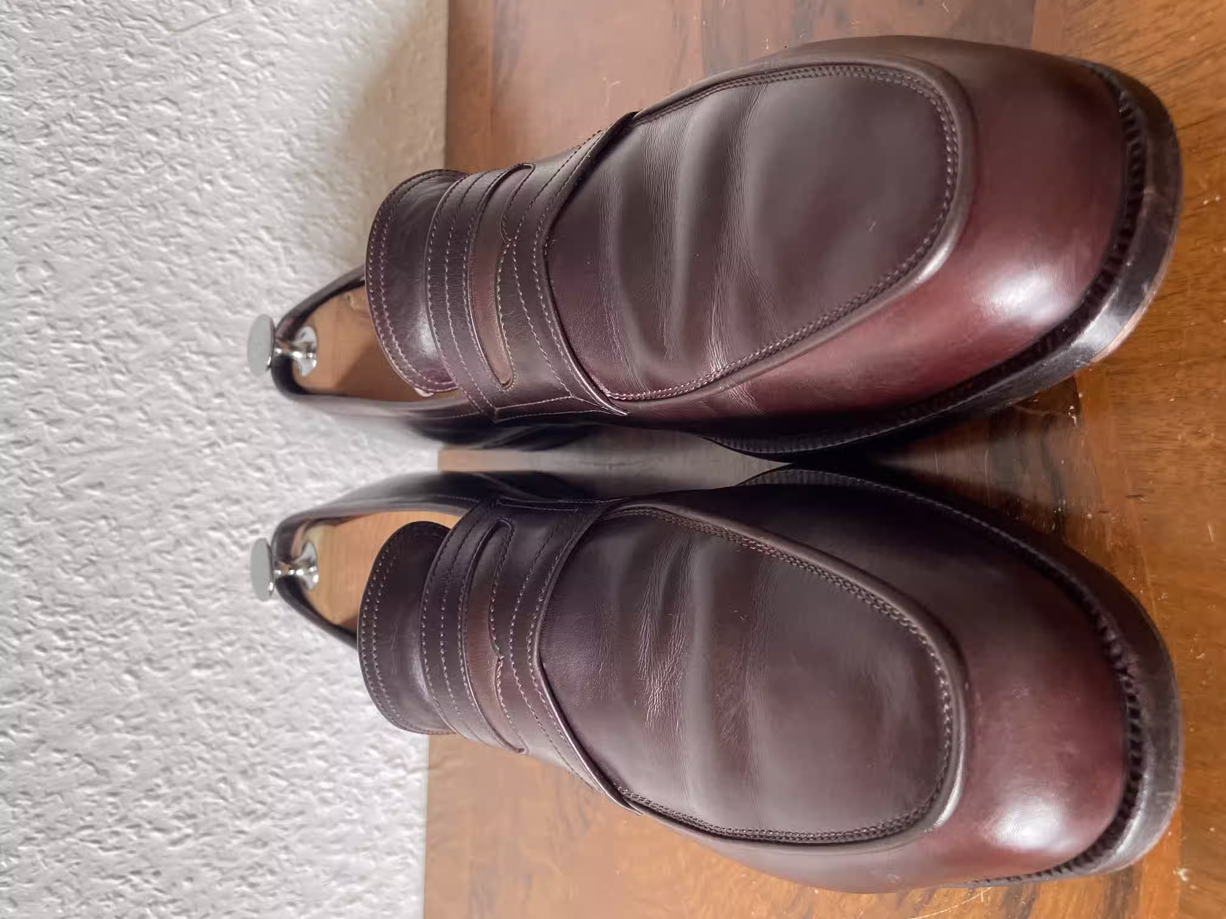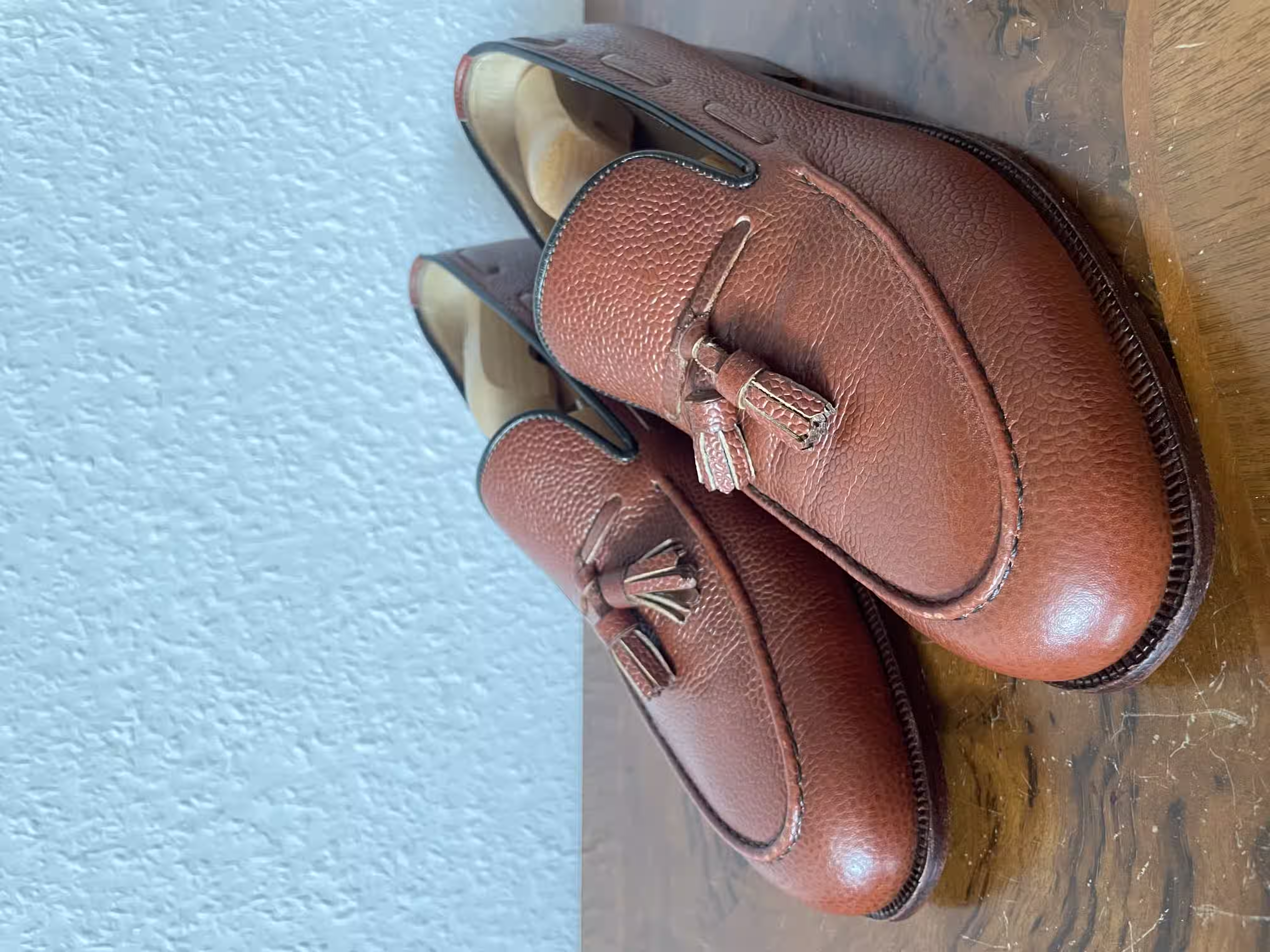 These are very casual loafers with an unusual toe shape and made of snakeskin, whose scales stand out slightly upon closer inspection. It is a pure leisure shoe that, in my opinion, can be well combined with jeans or chinos. Personally, I would only wear such loafers in summer - in my view, snakeskin fits best there because it has a touch of the exotic.