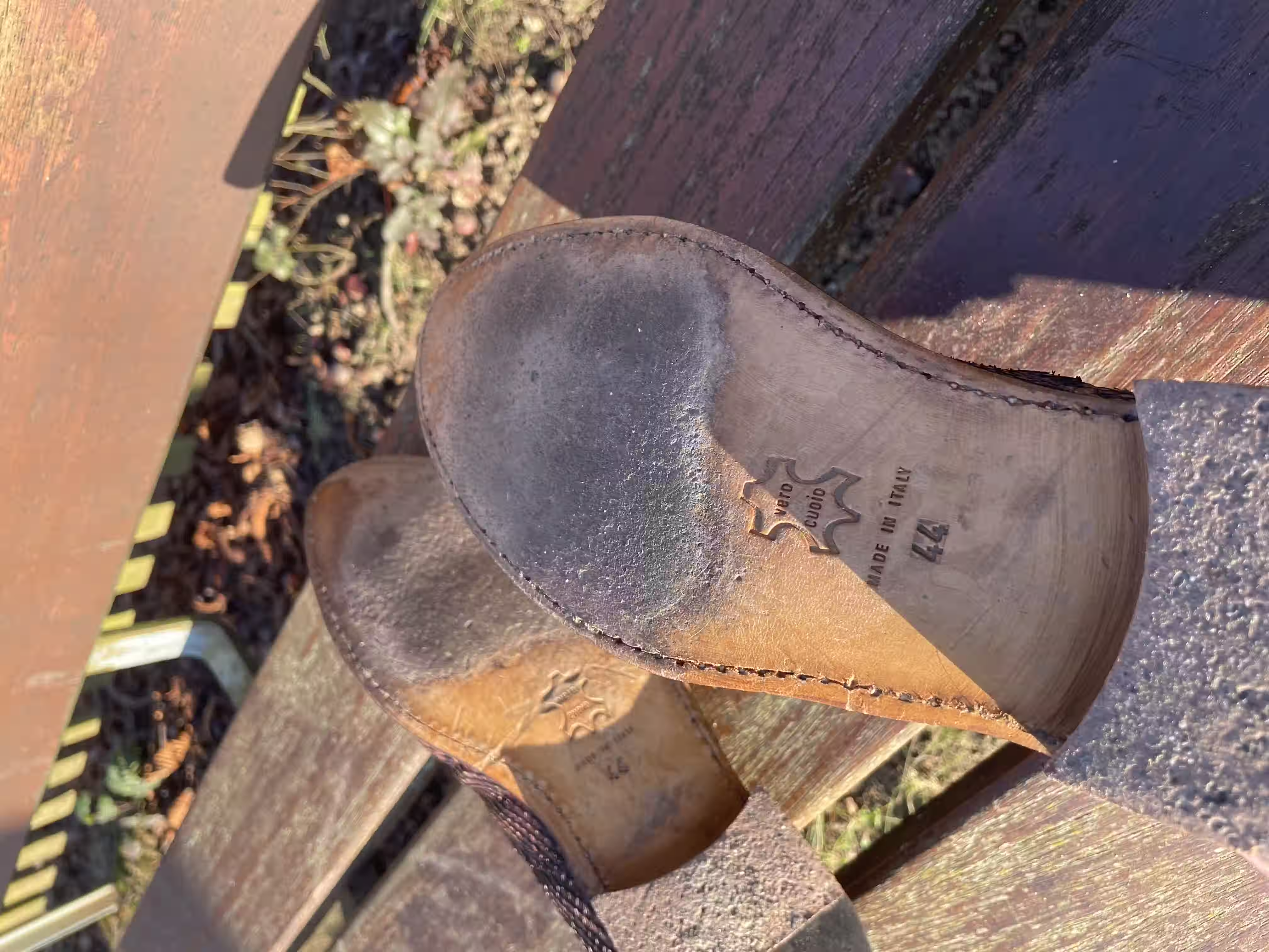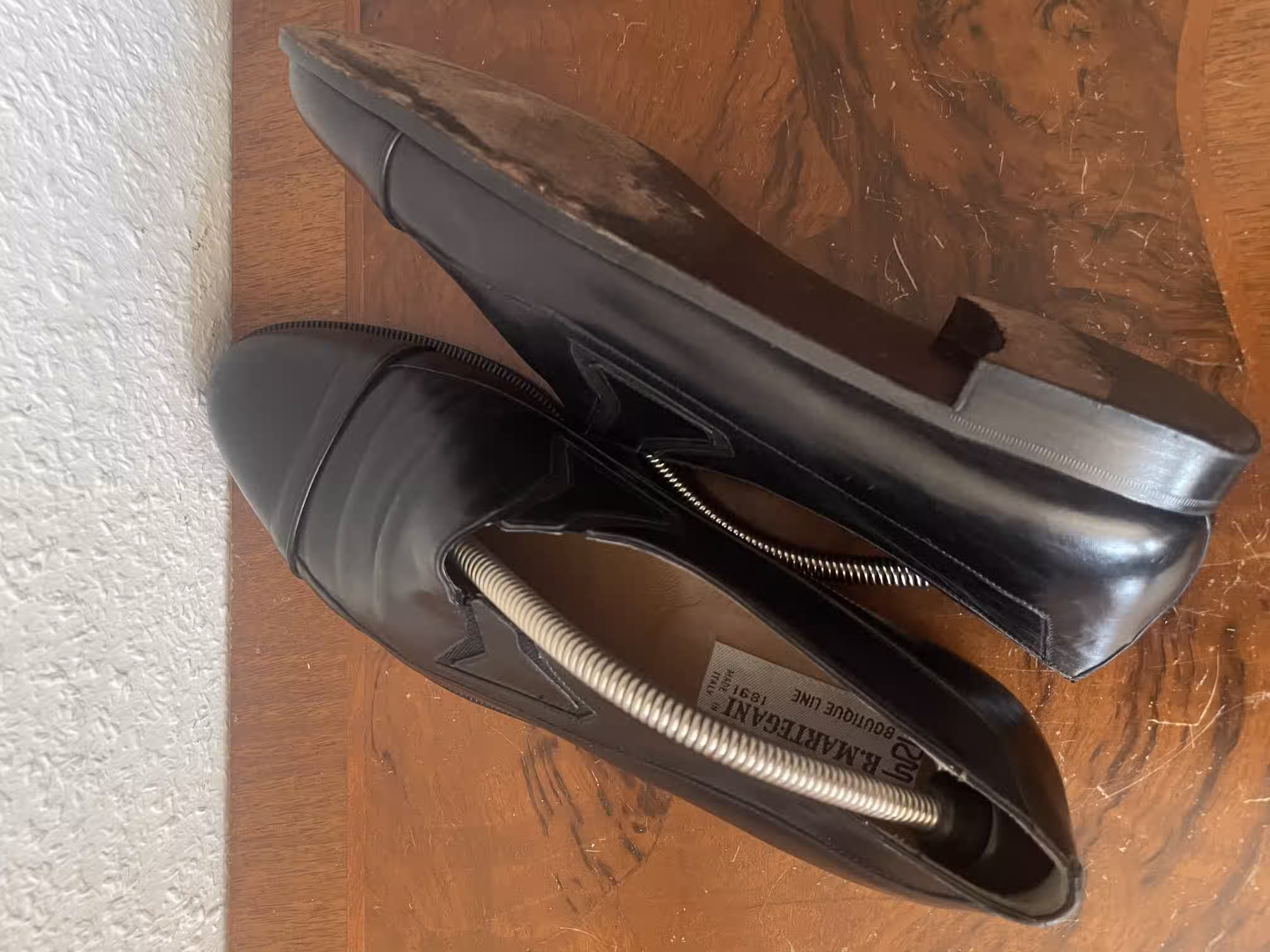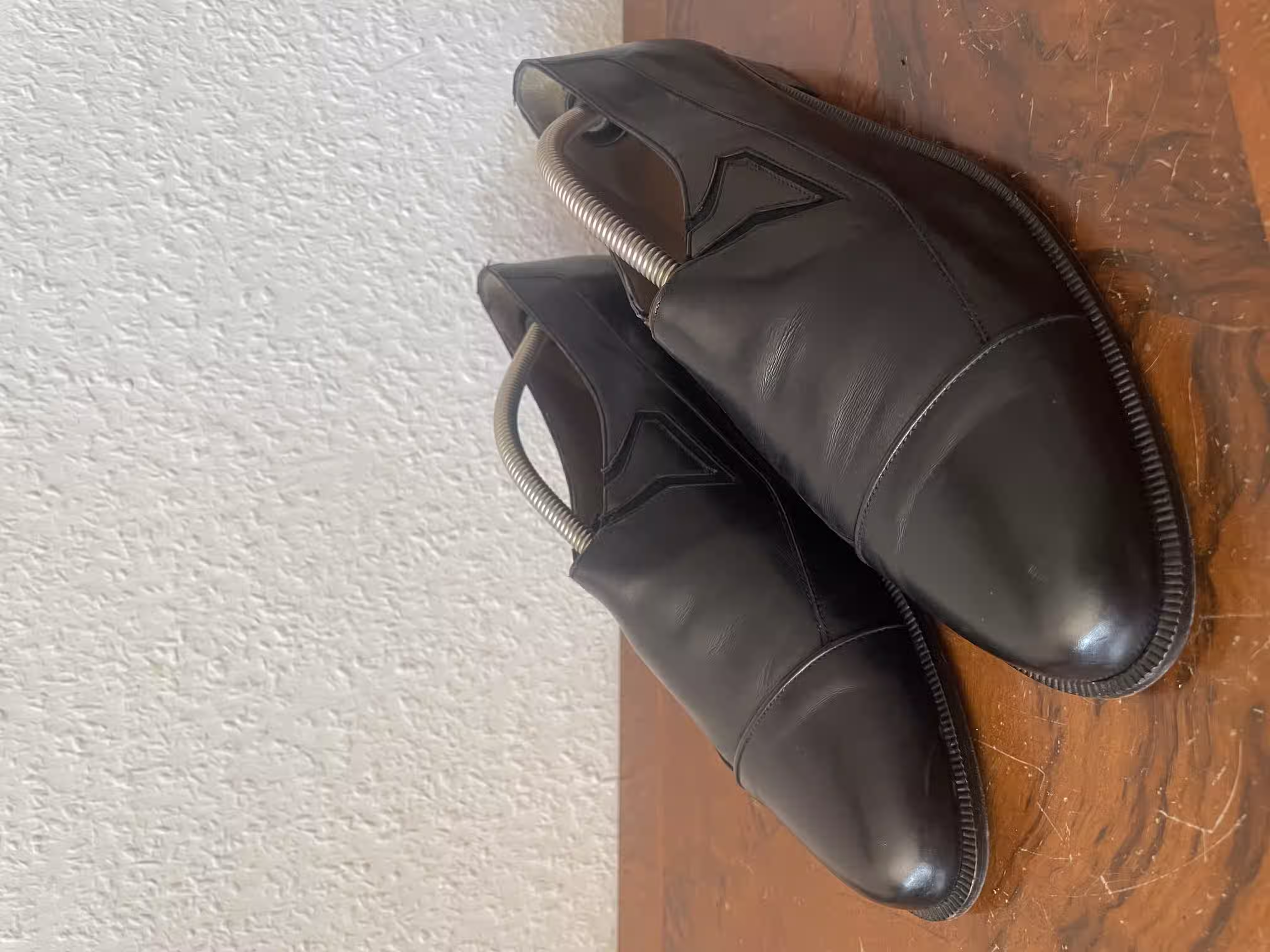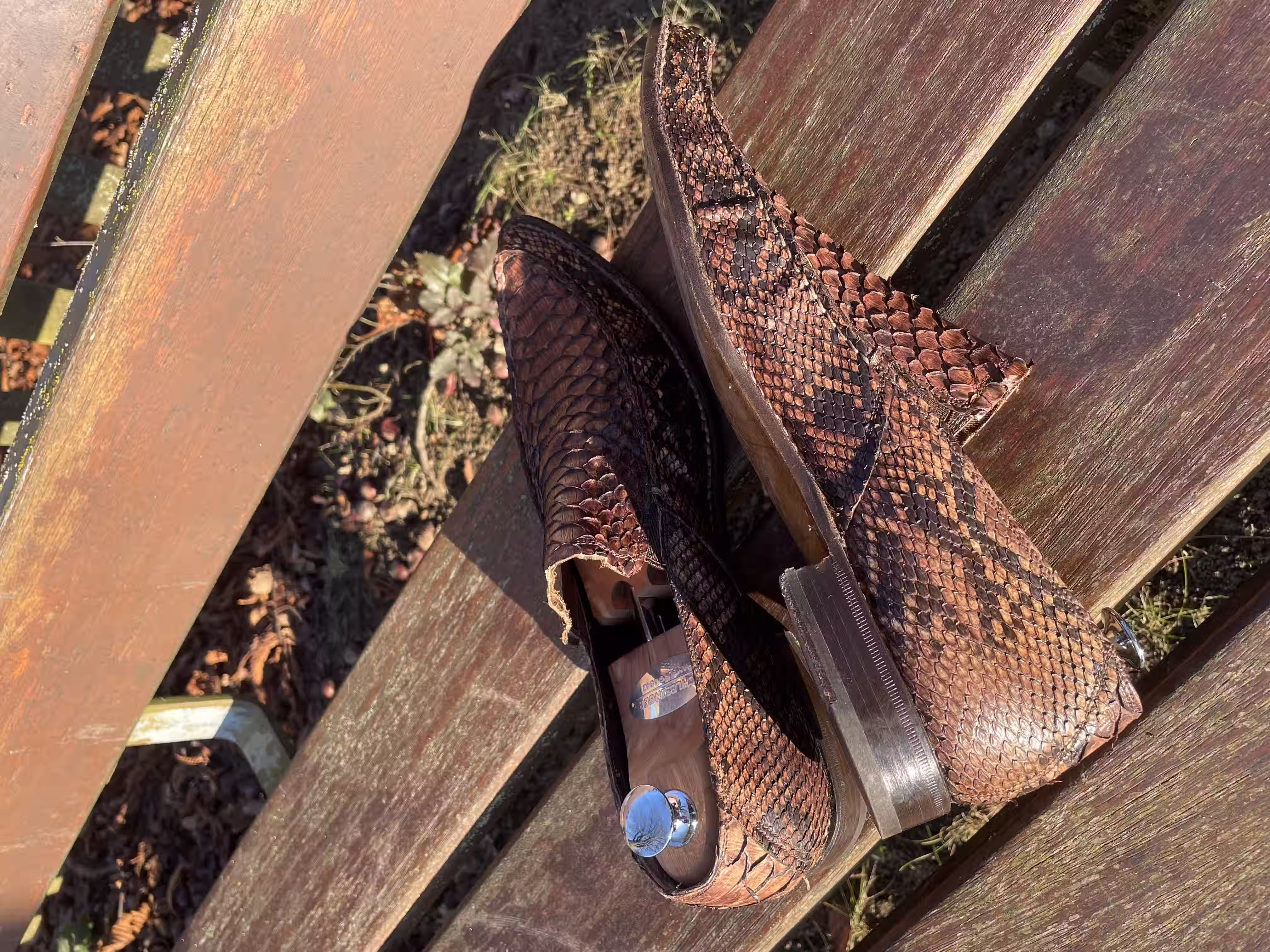 These are very casual loafers with an unusual toe shape and made of snakeskin, whose scales stand out slightly upon closer inspection. It is a pure leisure shoe that, in my opinion, can be well combined with jeans or chinos. Personally, I would only wear such loafers in summer - in my view, snakeskin fits best there because it has a touch of the exotic.