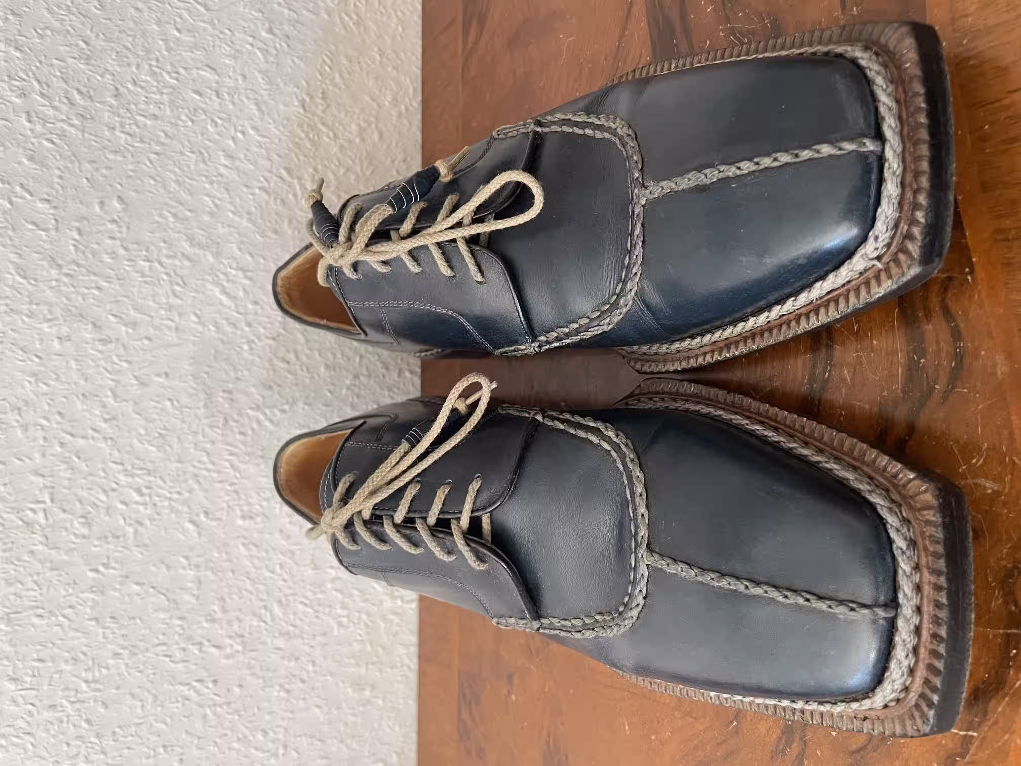 - striking decorative stitching or contrast stitching on the upper leather So they’re relaxed casual shoes, but deliberately not understated—rather, they’re designed to be decorative. This makes them even more relaxed and playful than, for example, the typical brown or black cap-toe Derbies. However, if you wear Boho shoes to serious formal or business occasions, you show that you don’t really take the person you’re meeting or the occasion seriously.