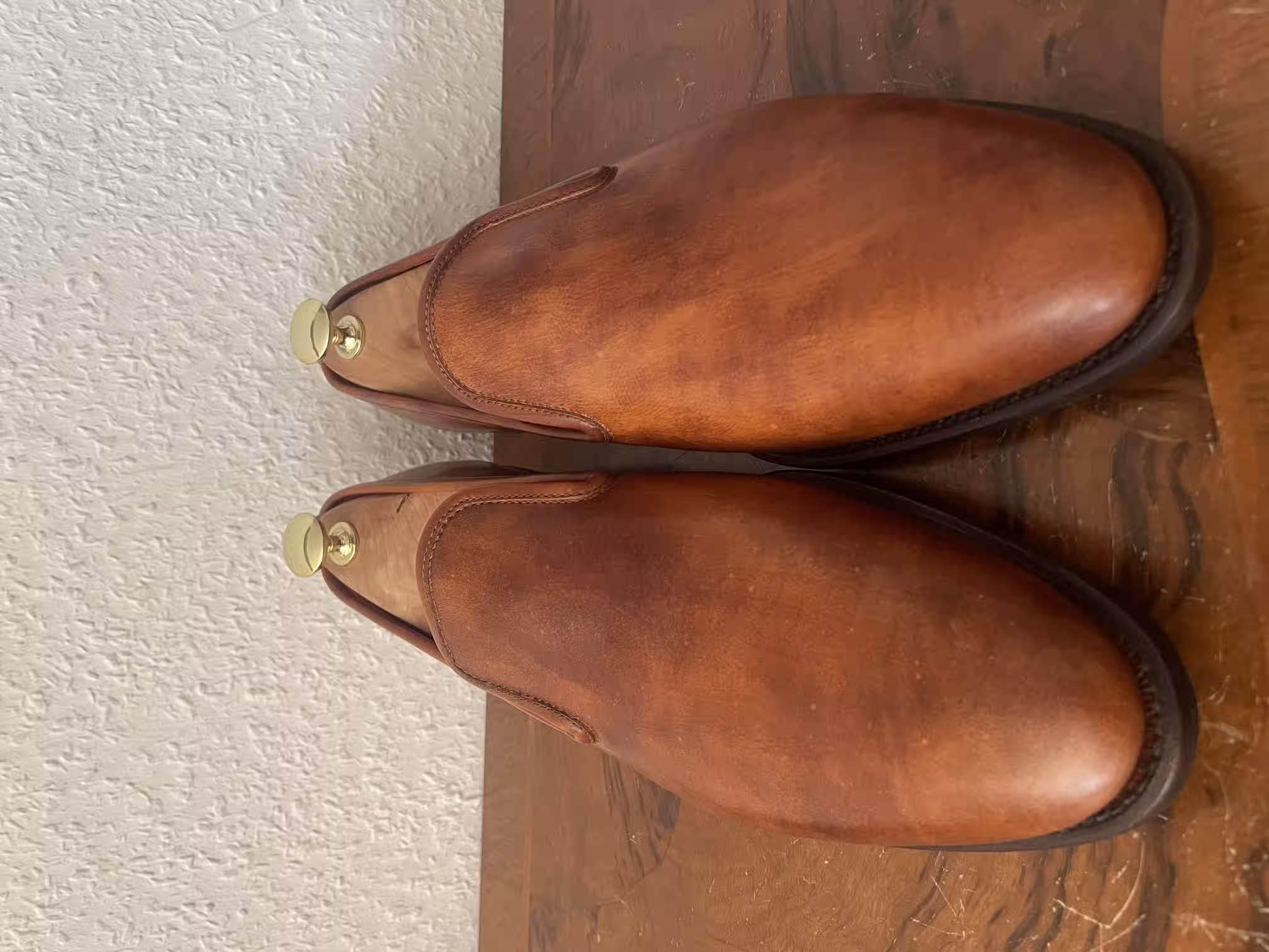Purist brown patina loafers in wholecut style