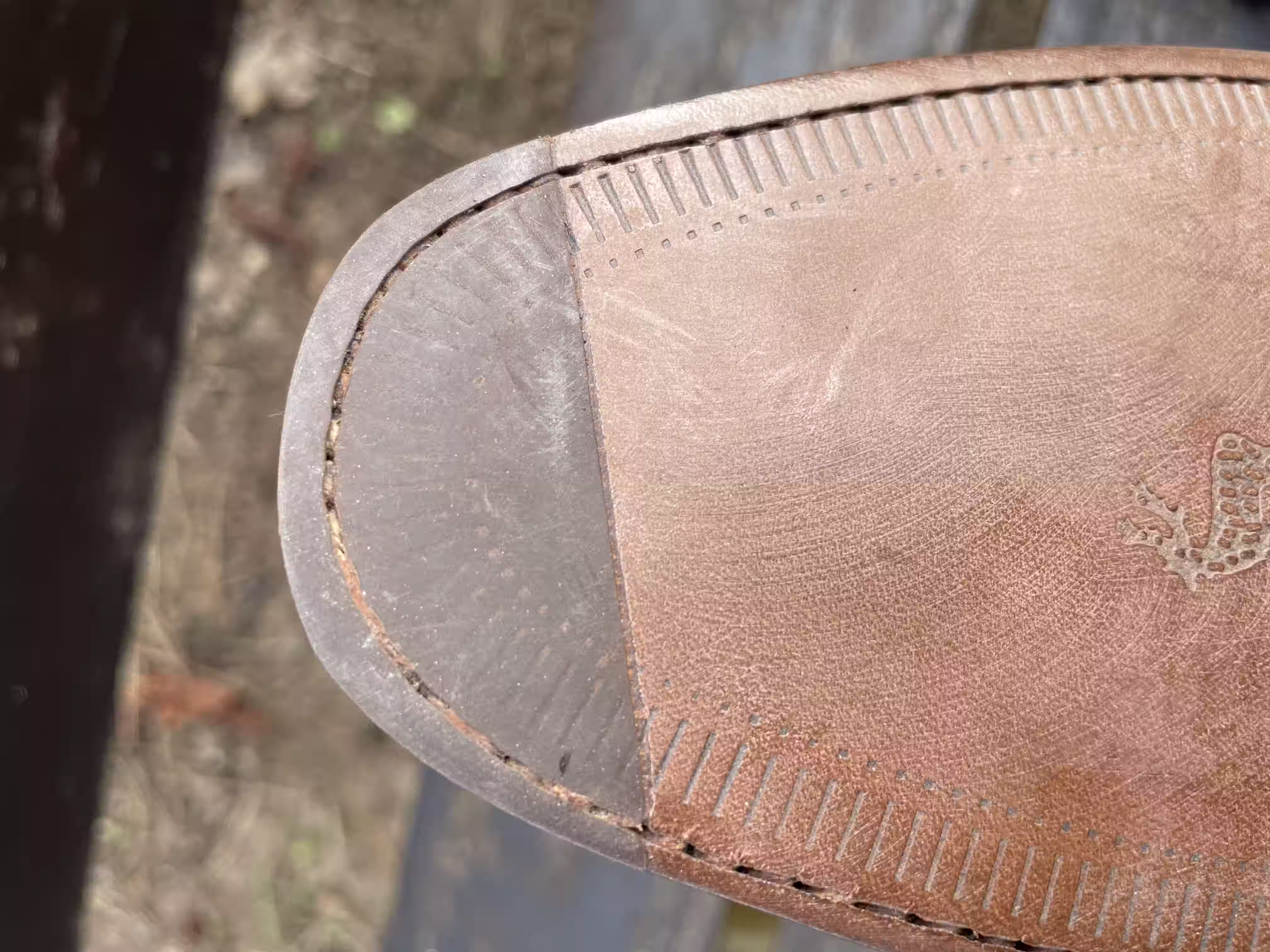 Probably the biggest advantage of stitched leather shoes is the ability to replace the sole when the old one has been worn down. The wear on the sole is particularly pronounced in the following two areas: