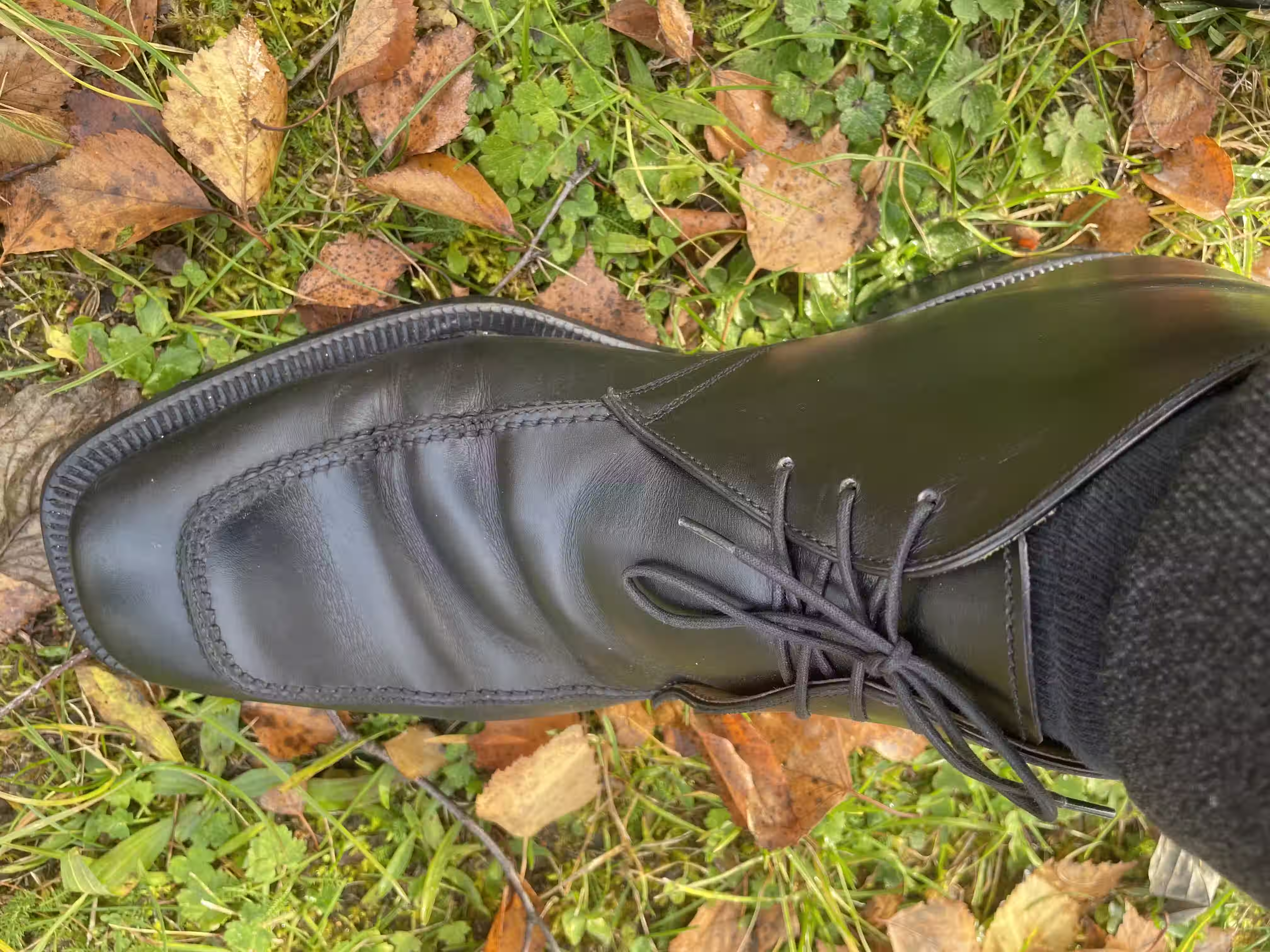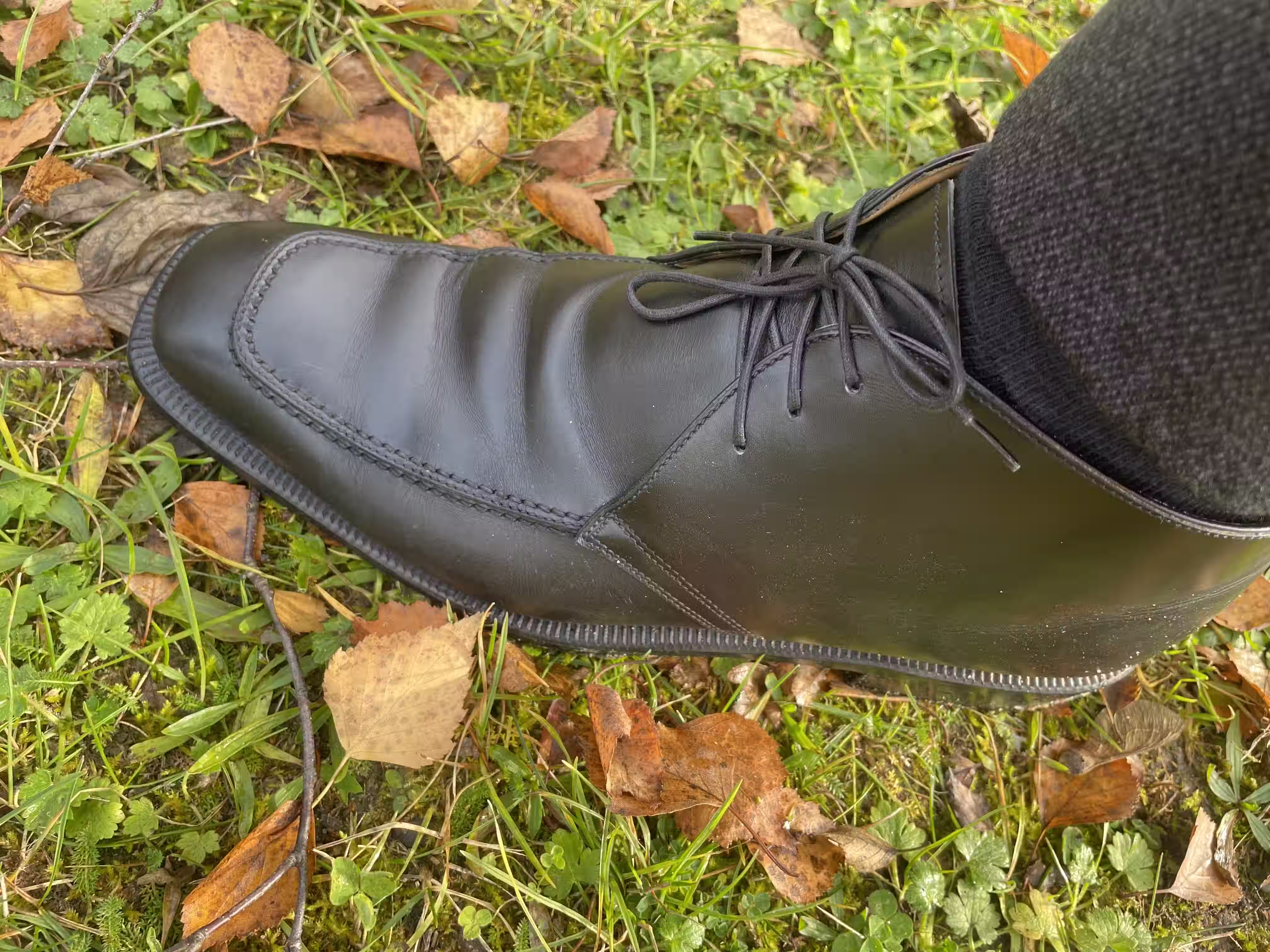 In terms of material, my best leather shoes have the best leather: vegetable-tanned leather for the lining and for the soles—optionally also for the upper leather. The rest is secondary for me, for example whether the upper leather is smooth leather or suede. Those are finer details whose pros and cons can be discussed elsewhere. Here I’m concerned with a category of particularly well-made, stitched leather shoes that, in my view, are miles superior to most commonly available, glued shoes.
