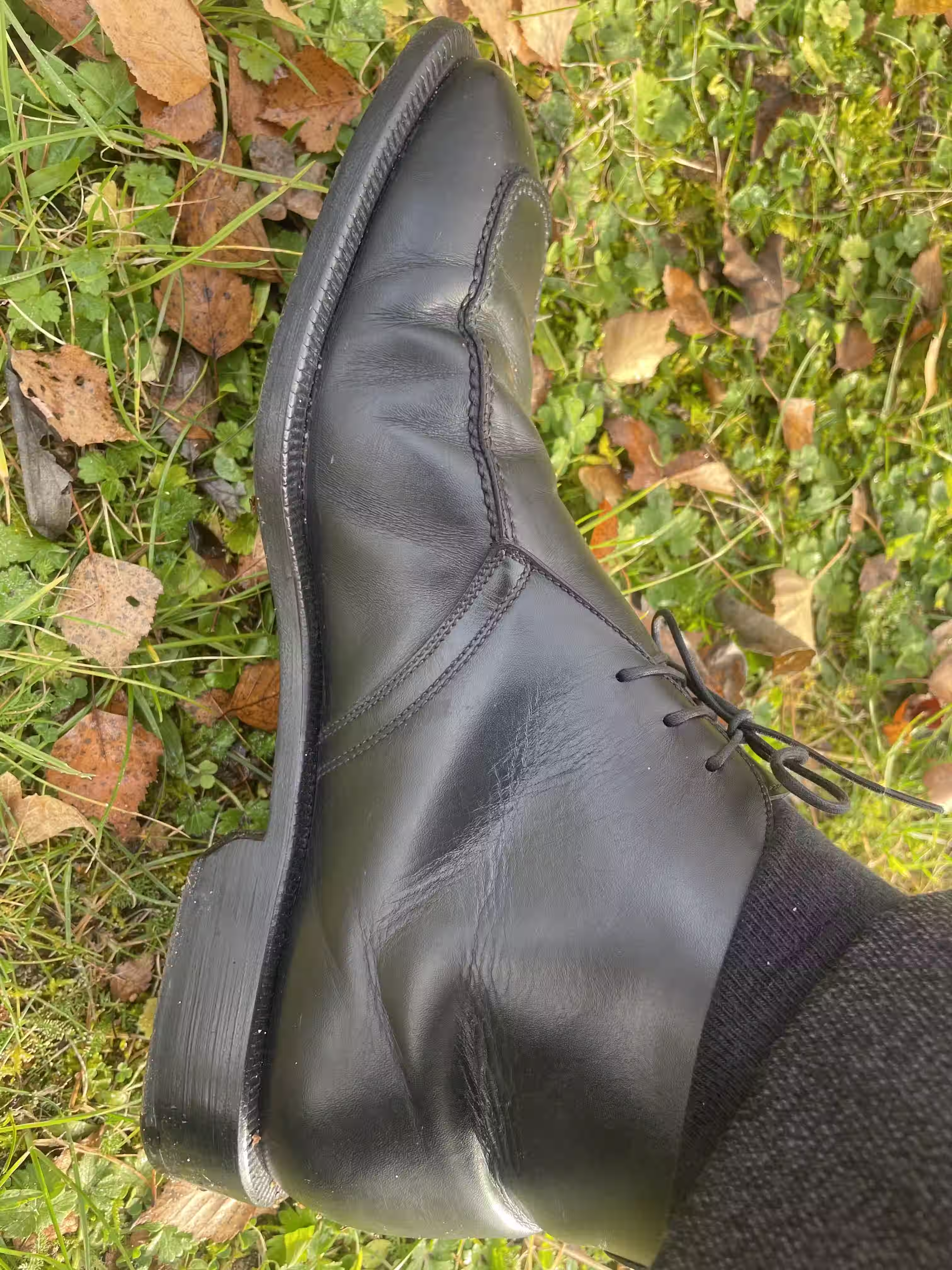 And here we are then in the gray zone, consisting of different combinations between these two worlds. There is some of that out there, as many shoe manufacturers try to maintain a kind of balance between quality and price. The better of these shoes, for me, are those that stay closer to the hand-stitched leather shoes made from high-quality leather. That is, very roughly speaking, the hierarchy of shoes for me, without taking the price tag and the specific fit into account.