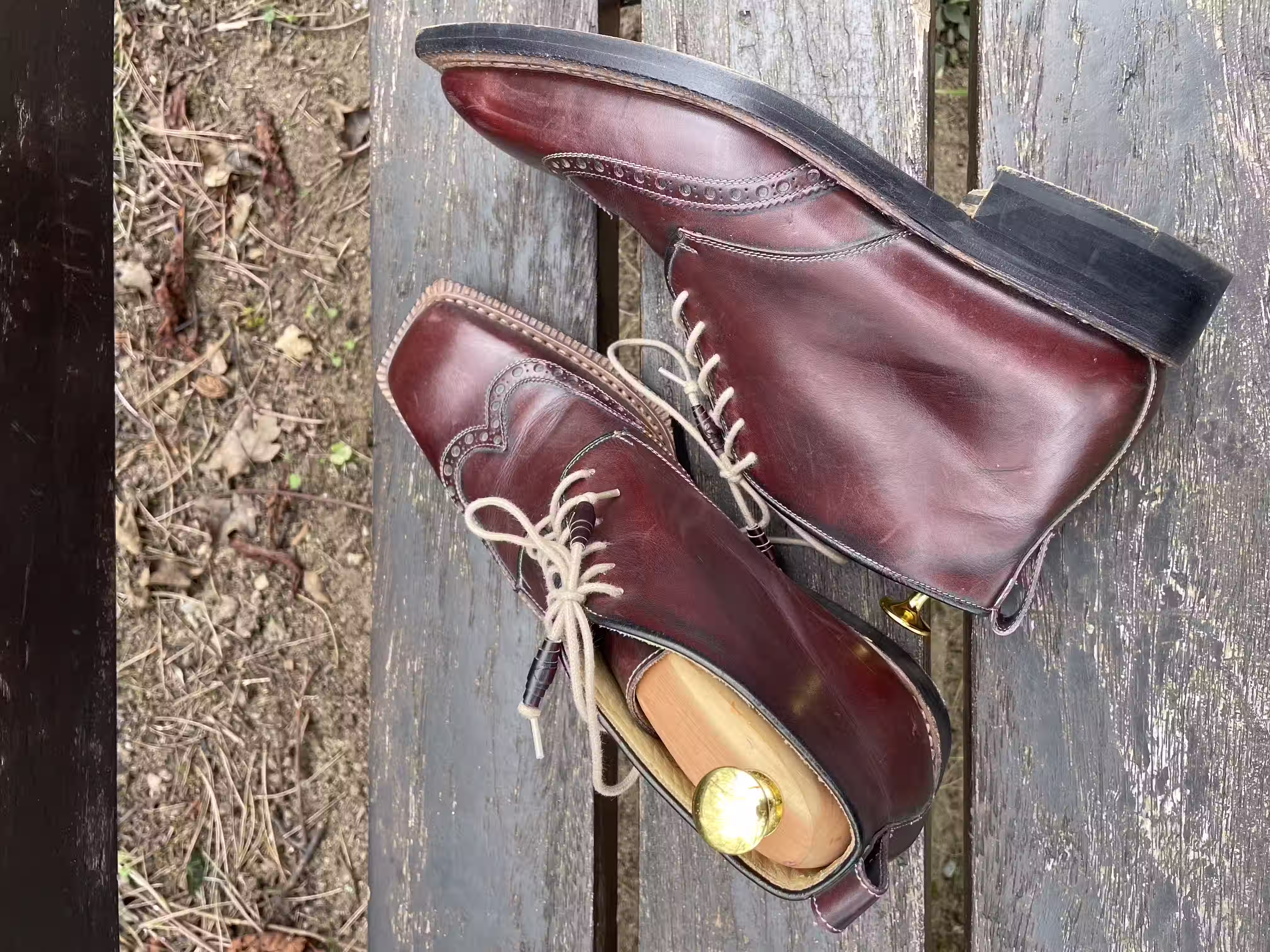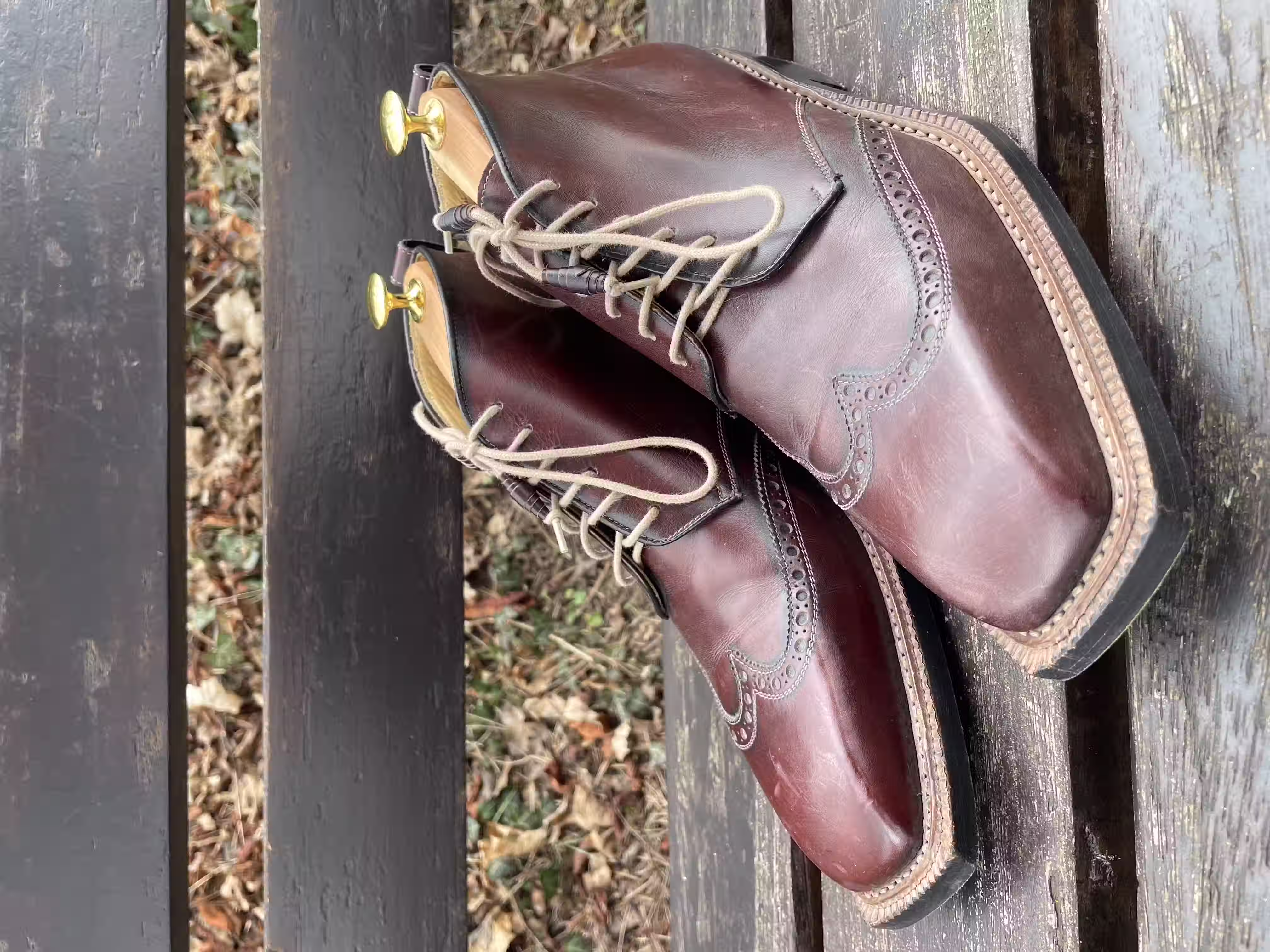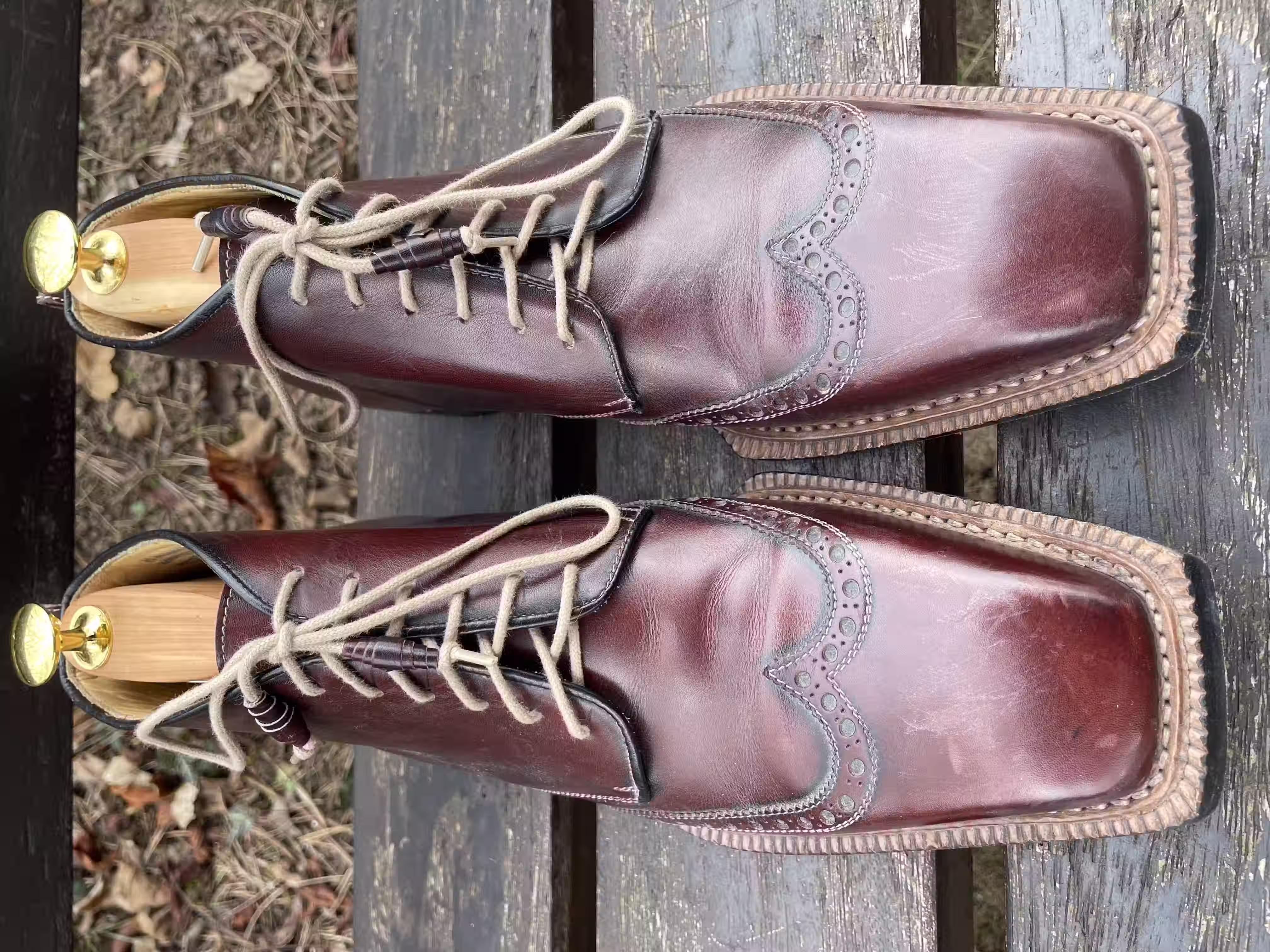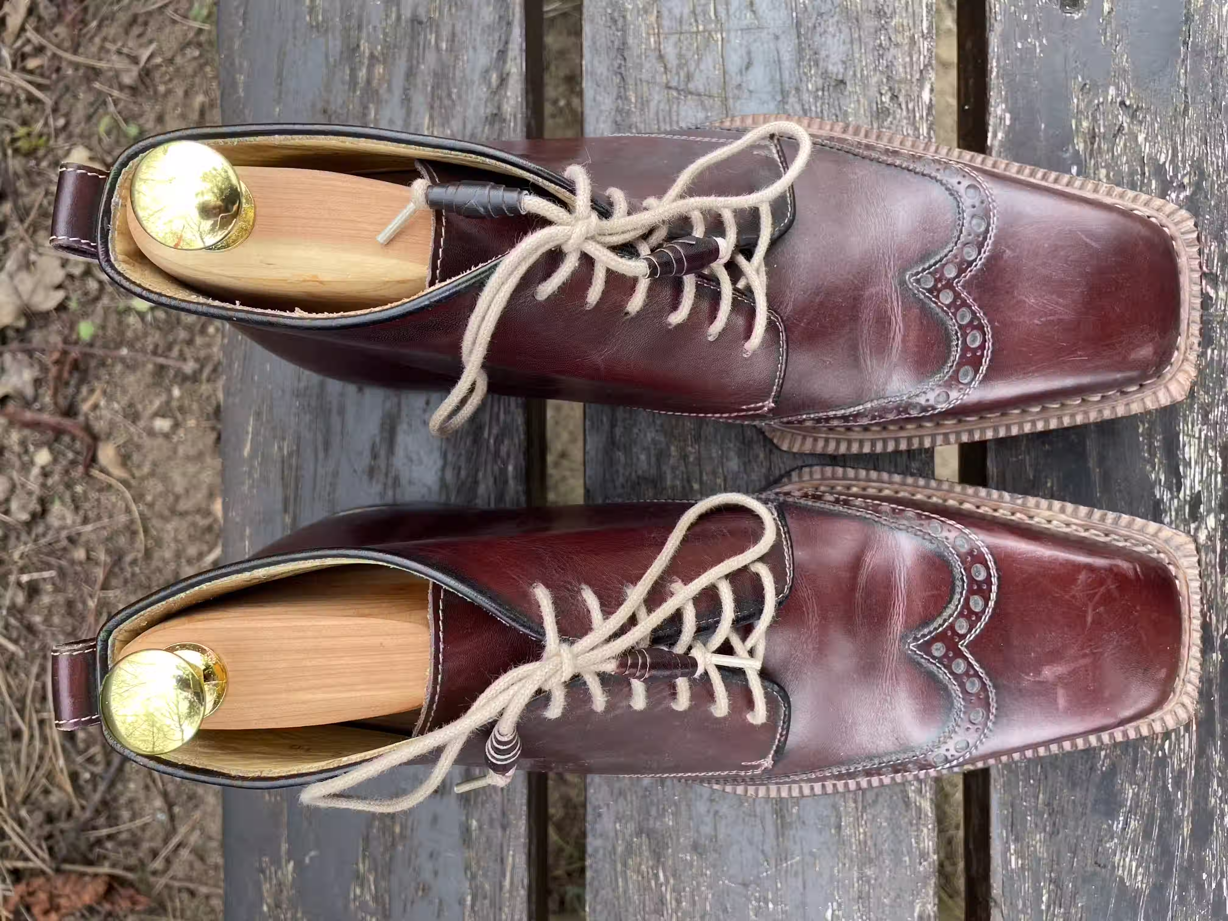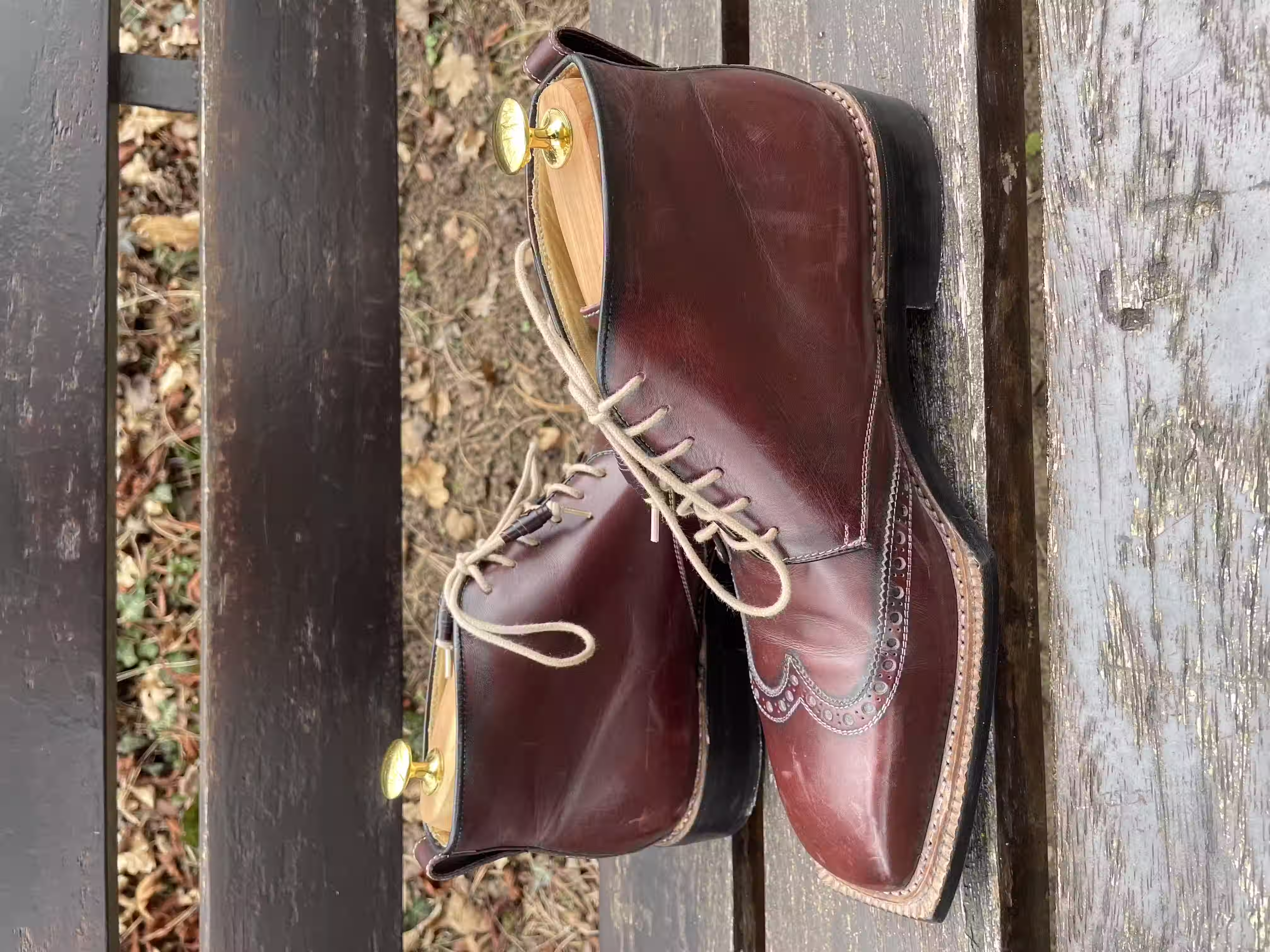 What you can also see here is that wing caps can readily be used for boots and ankle boots as well. This pair of ankle boots in the so-called derby cut even has a special shape, which in my view makes the wing cap even more interesting.