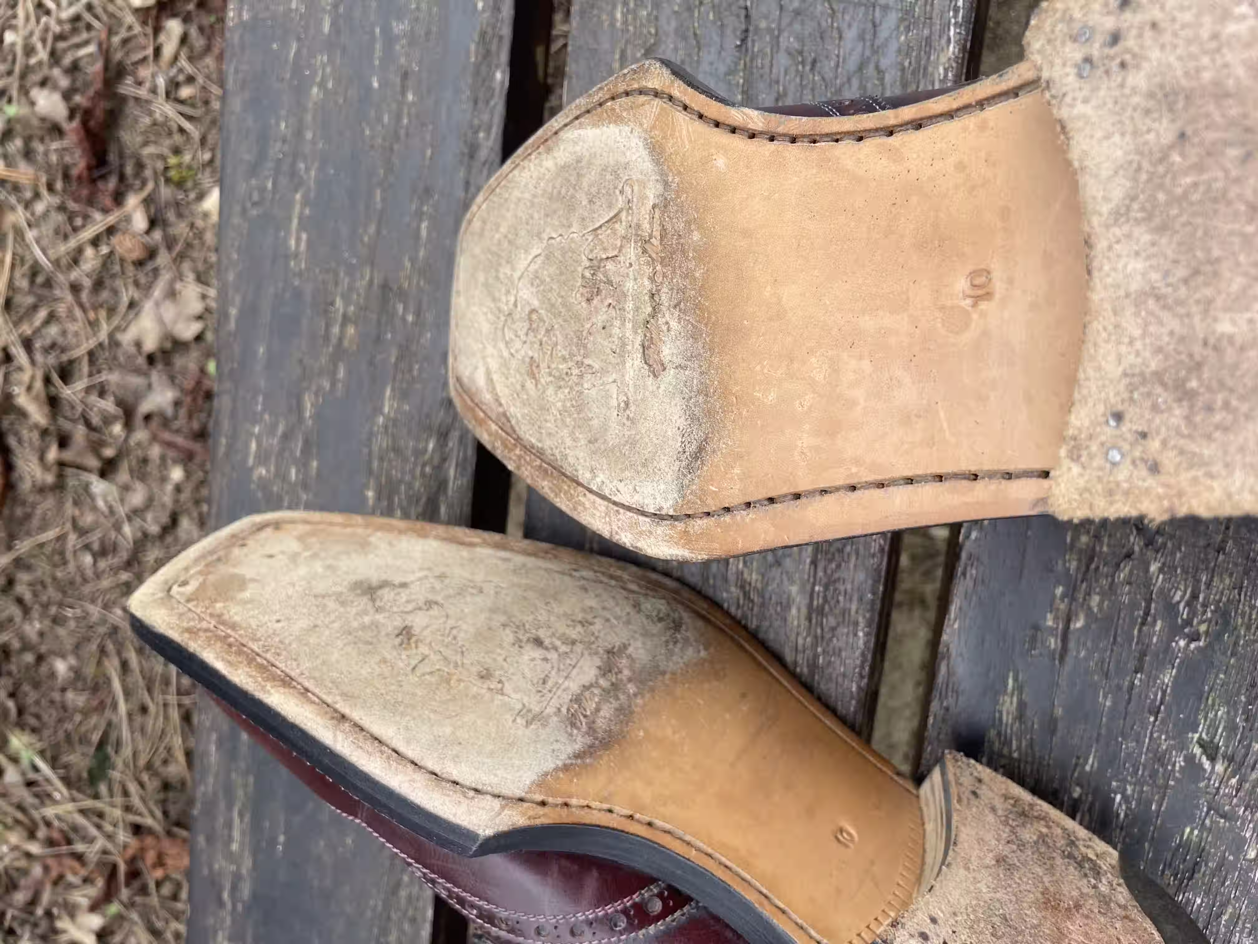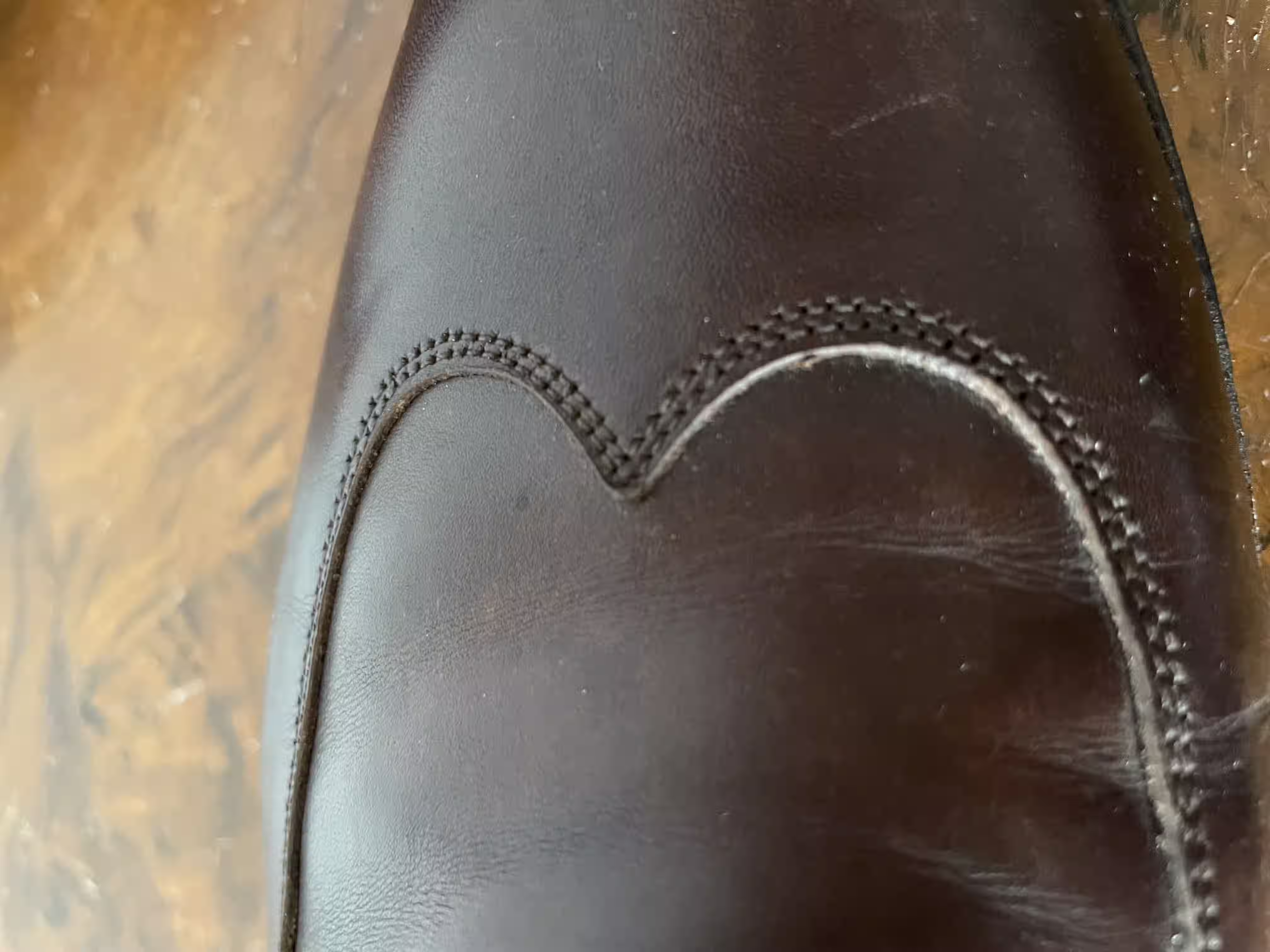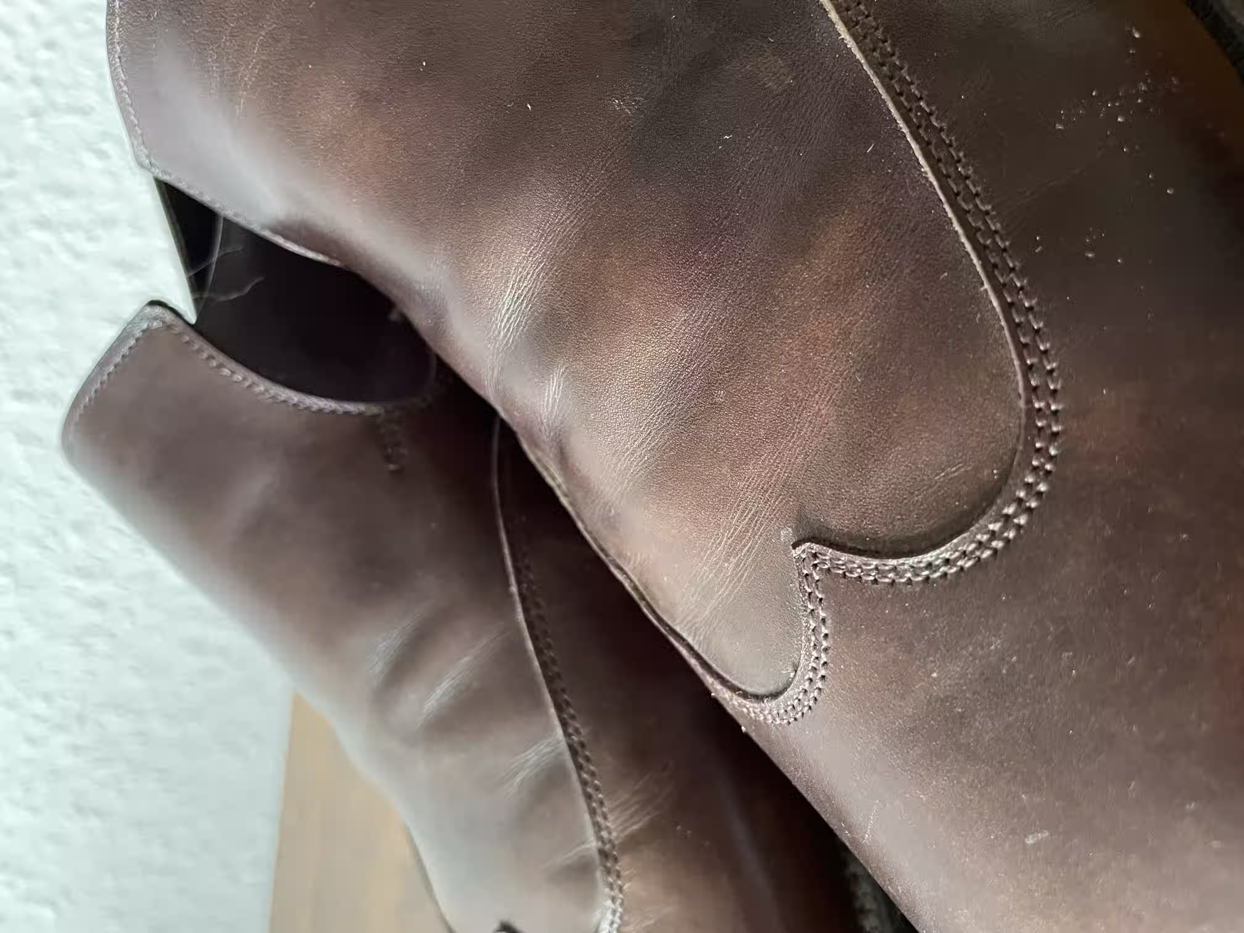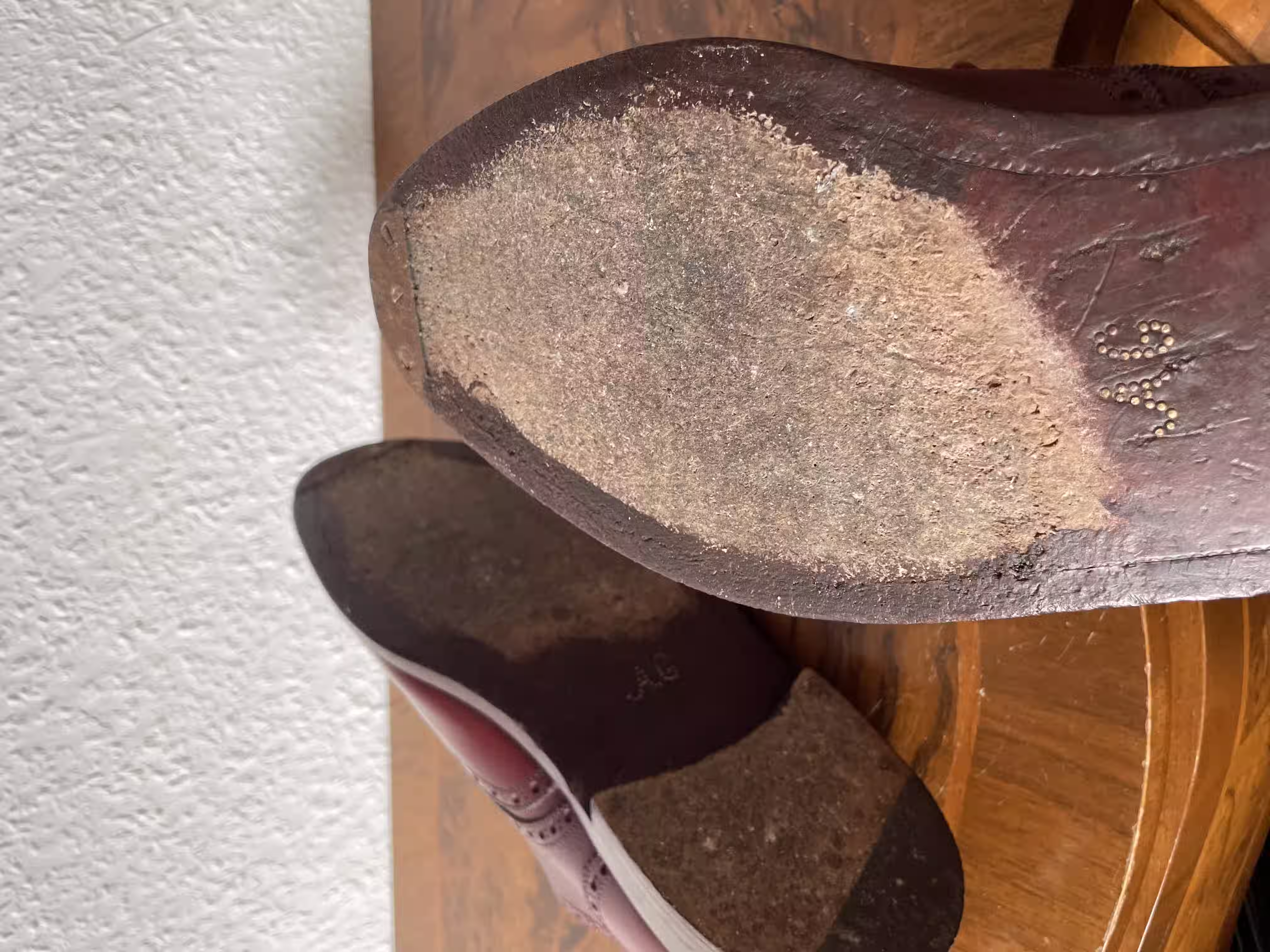 You can also see at the transition that the wing cap is an additional layer of leather that is placed on top, glued, and stitched. This automatically reinforces the toe. Another striking detail: the wing cap extends far beyond the toe all the way to the side of the shoe. That makes it less restrained as a decoration than a simple toe cap.