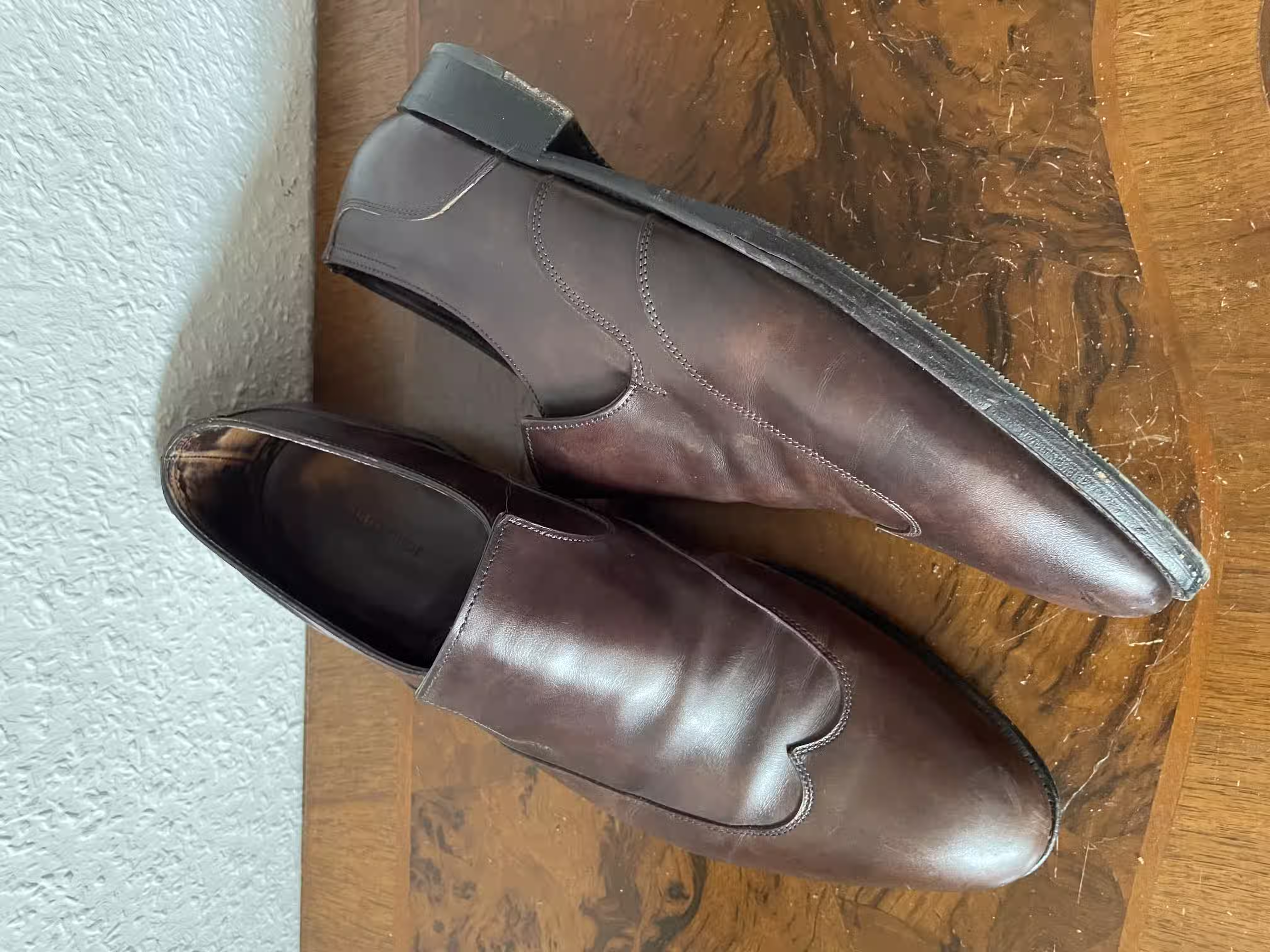 Otherwise, these are interesting patina loafers: The leather has a slight interplay of two somewhat different colors, medium brown and dark brown. In my view, shoes like these are excellent with a sport coat and trousers in different fabrics, especially in summery versions. Combined with jeans, I also find these loafers suitable for the office.